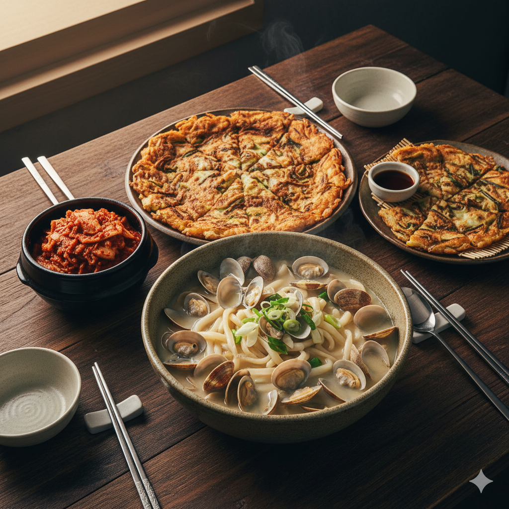 * 해물파전: 칼국수와 같은 해산물 계열로 통일감을 줍니다.