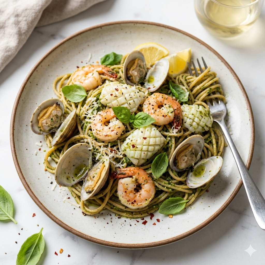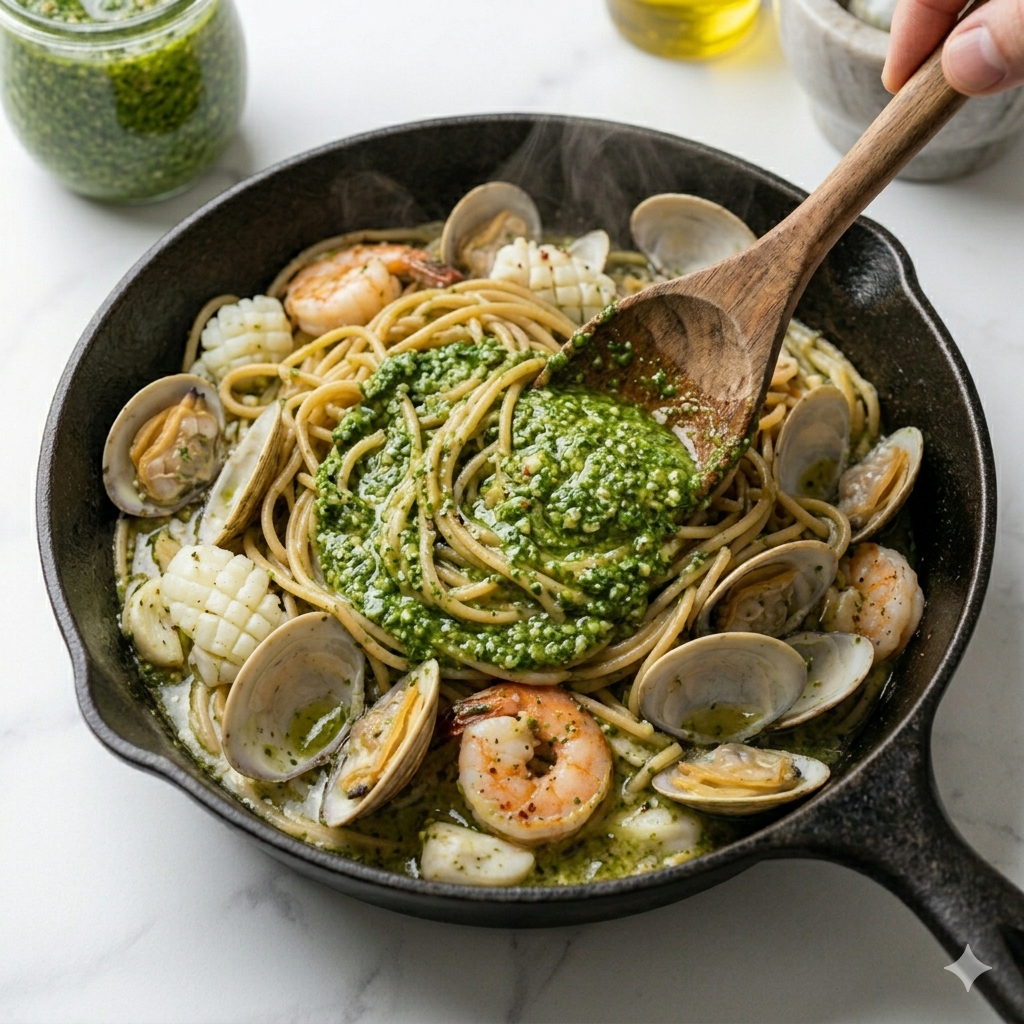 * 비법: 해산물의 비린내를 잡고 싶다면 조리 마지막에 레몬 제스트를 살짝 뿌려보세요. 산미가 바질의 향을 더욱 입체적으로 살려줍니다.
