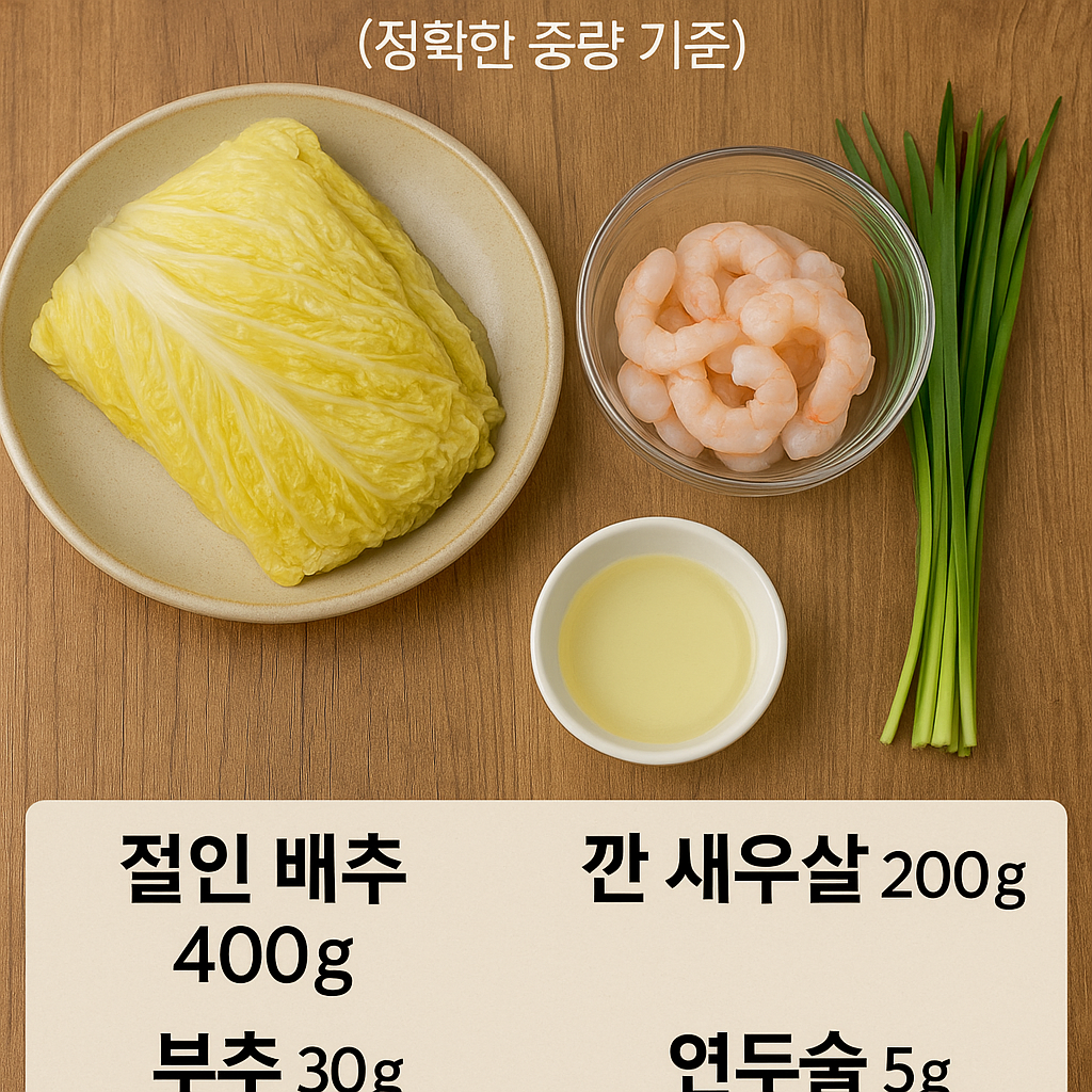 ■ 배추새우만두 준비 재료 (정확한 중량 기준)
