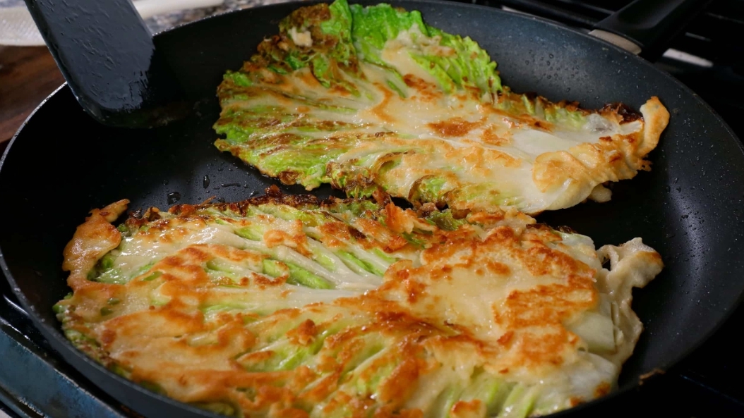 그러나 단순히 배추에 반죽을 묻혀 굽는 방법만으로는 식감의 밸런스가 무너지기 쉽습니다. 줄기 부분이 익지 않거나, 반죽의 점도가 맞지 않아 눅눅해지는 문제도 자주 발생합니다.