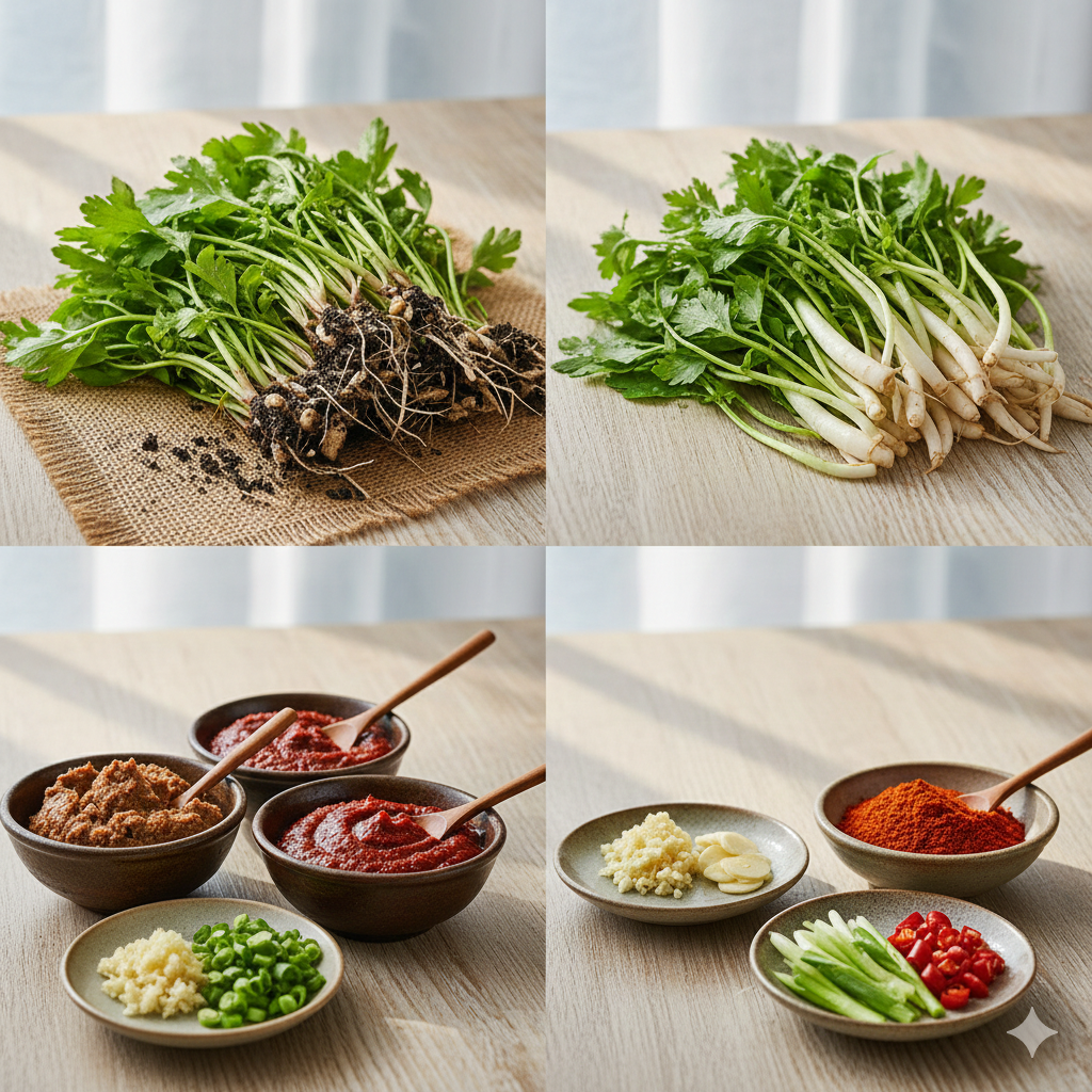 * 물에 불리기: 찬물에 10분 정도 담가두면 흙이 불어 쉽게 떨어집니다.