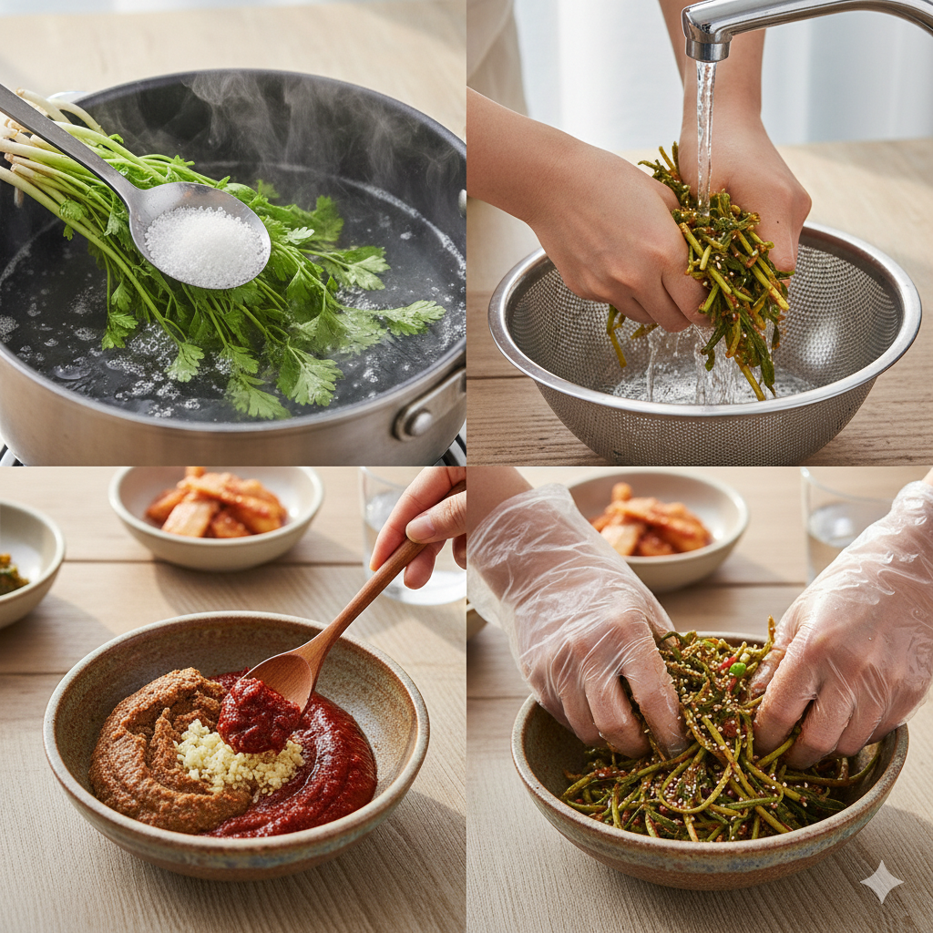 Step 1: 소금물에 데치기