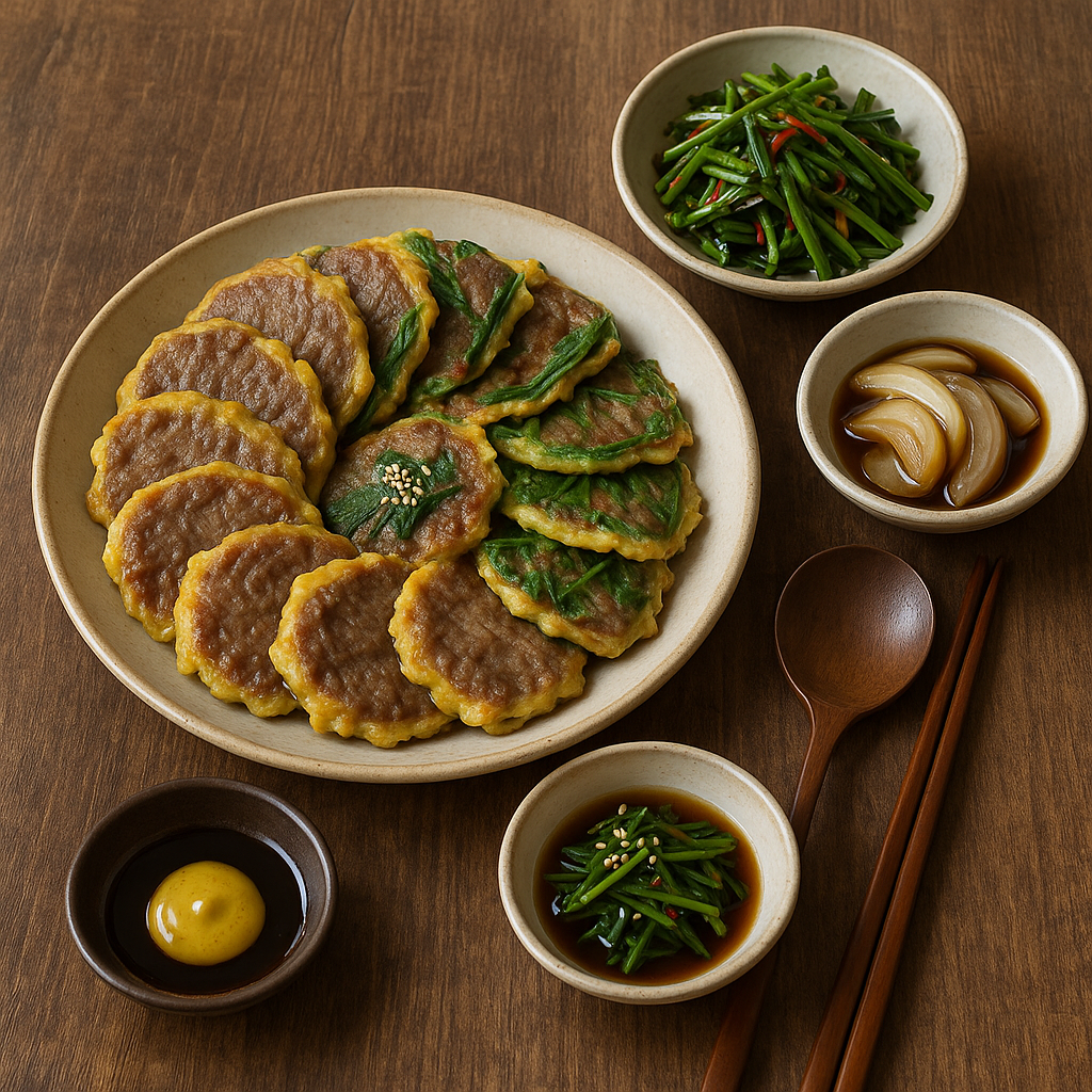 육전은 단독으로도 충분히 맛있지만, 적절한 곁들이기와 함께 구성하면 전체 상차림의 완성도와 균형이 크게 향상된다.