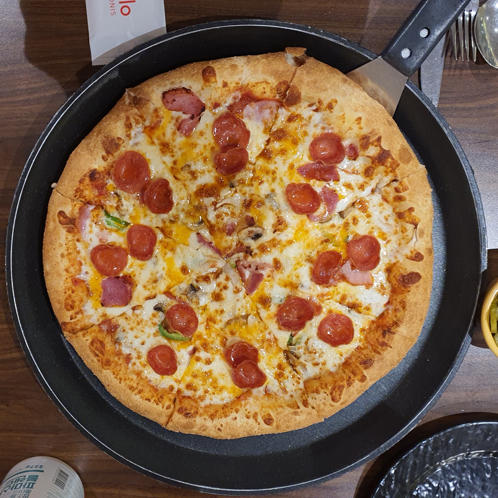 피자는 비주얼은 좋았고, 토핑도 넉넉했어요.