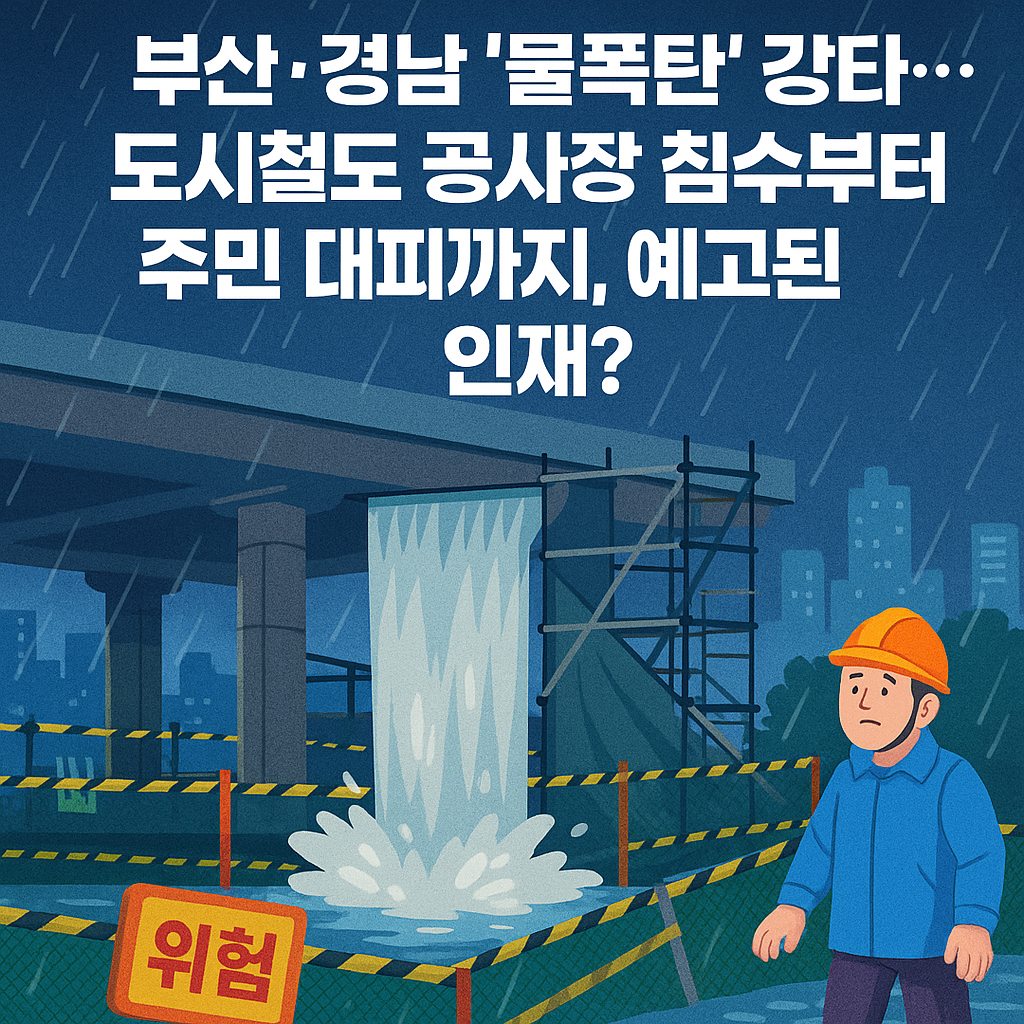 사상~하단선 도시철도 공사 현장은 빗물에 침수됐고, 일부 지역에서는 주민이 숙박업소로 긴급 대피하는 사태까지 벌어졌습니다. 특히 예보된 기상 상황임에도 불구하고 주요 공공기관과 시공사의 대처는 매우 미흡했습니다.