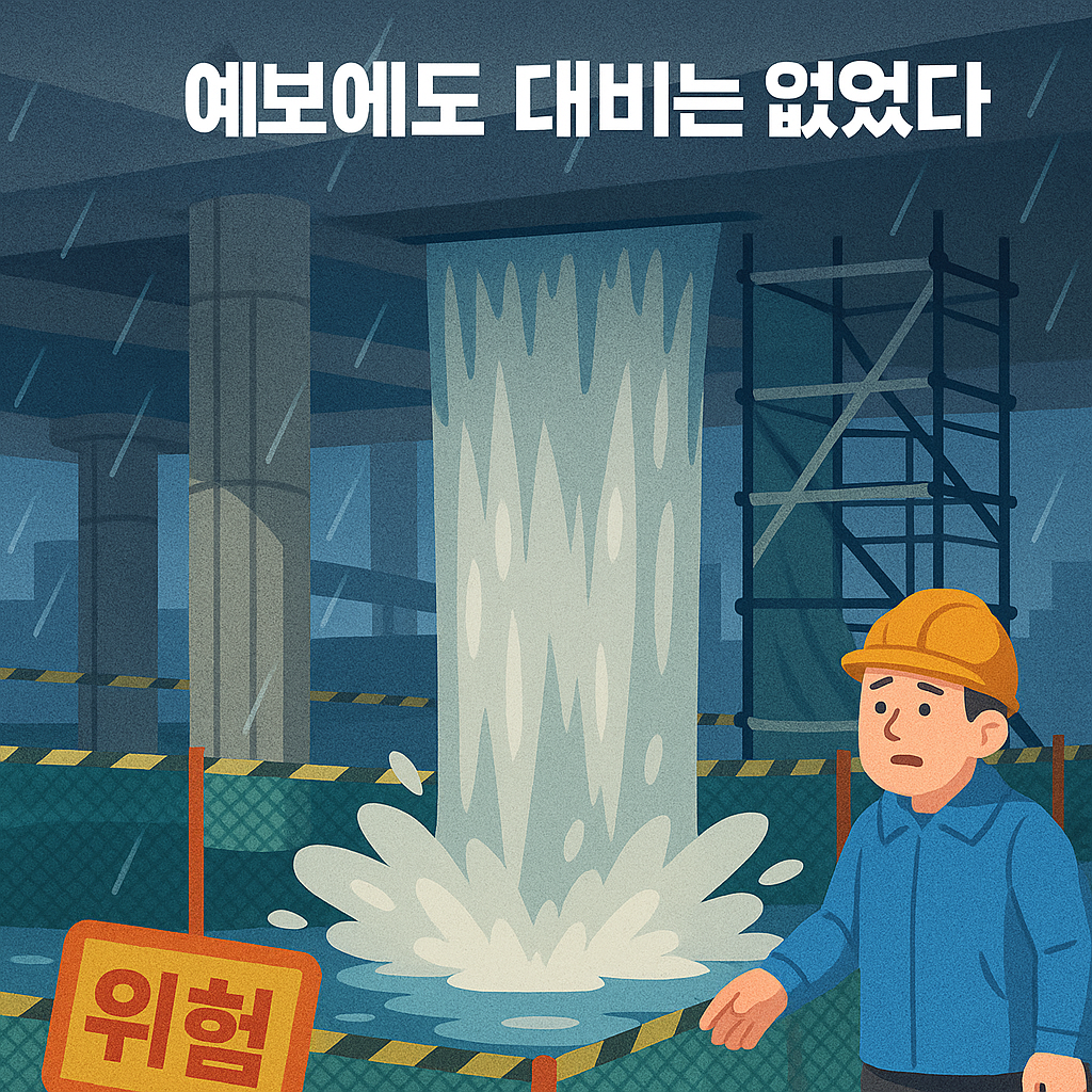 해당 지역은 구조물 공사가 완료된 상태라고는 하나, 비 예보가 있었던 상황에서 기초적인 방수·배수 시스템조차 작동하지 않았던 점은 명백한 책임 회피로 보입니다.