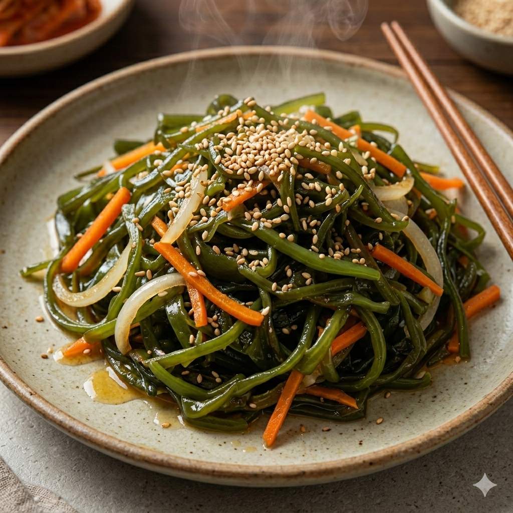 미역줄기볶음은 해조류 특유의 감칠맛이 있어 단백질 위주의 식단과 궁합이 좋습니다.