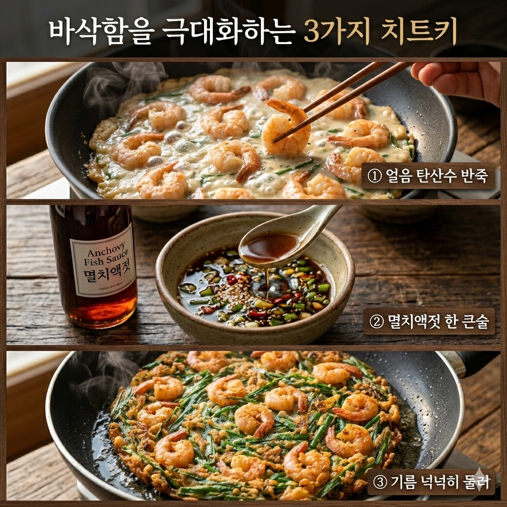 밀가루 범벅인 전이 아니라, 재료 본연의 맛을 살리면서도 과자처럼 바삭한 식감을 내는 특급 노하우를 공개합니다.