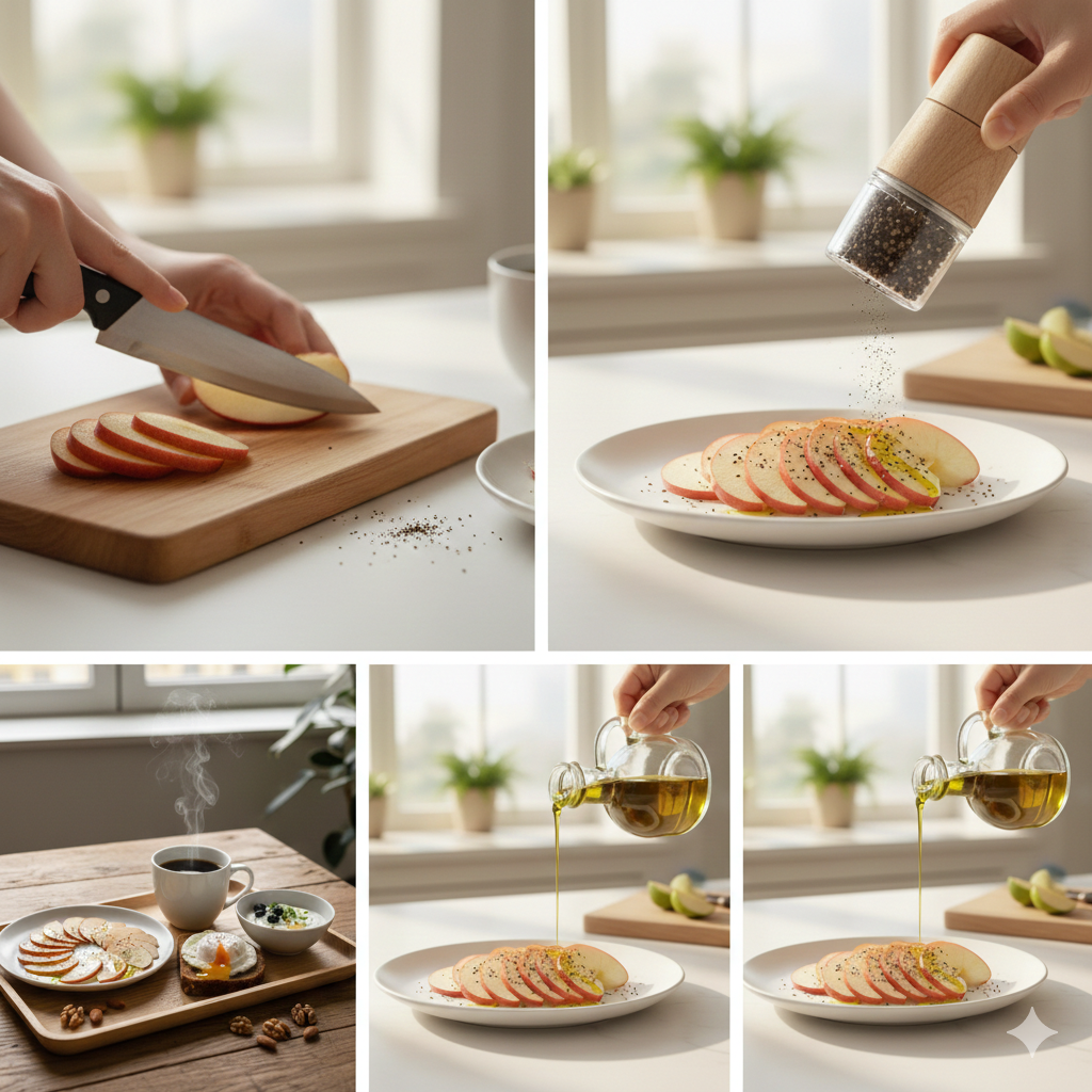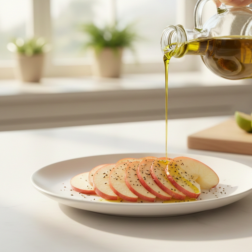 사과는 그 자체로도 '의사를 멀리하게 하는 과일'로 유명하지만, 올리브유와 만났을 때 그 영양적 가치는 폭발적으로 상승합니다.