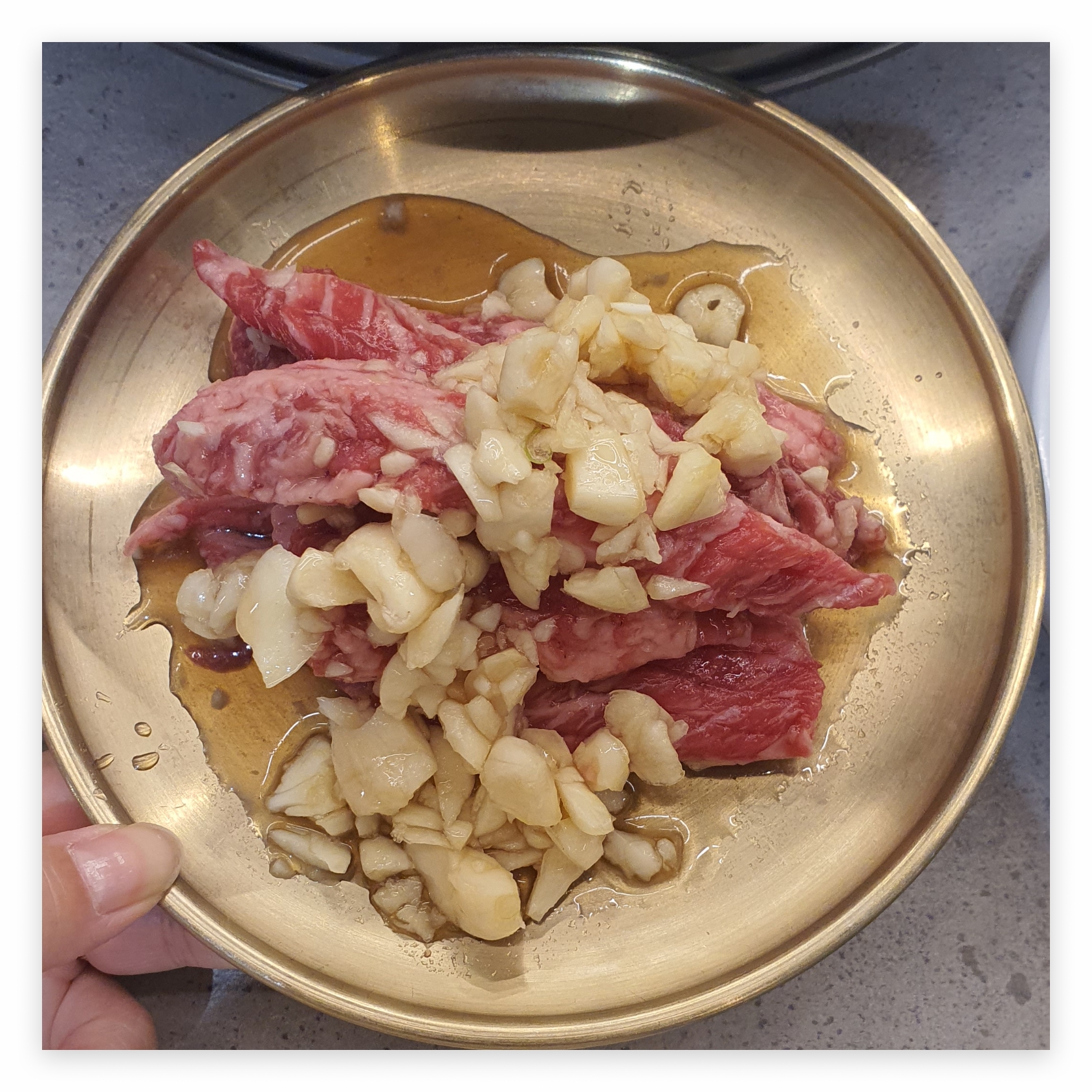 : 처음 방문하는 손님들에게 고기 굽는 방법을 자세히 설명해주면 좋을 것 같아요. 마늘 양념이 있어 쉽게 타버릴 수 있으니 주의하세요.