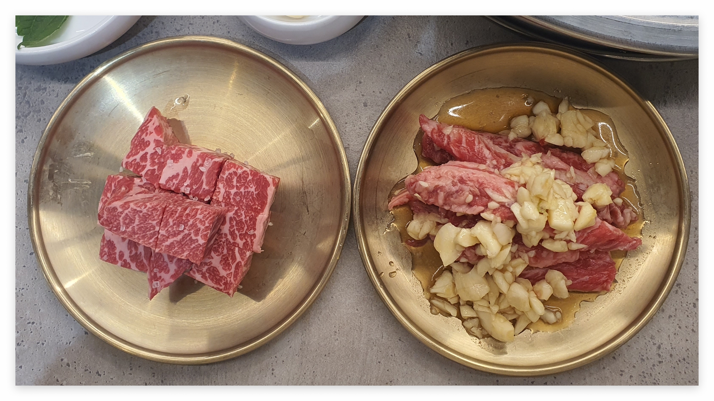 : 처음 방문하는 손님들에게 고기 굽는 방법을 자세히 설명해주면 좋을 것 같아요. 마늘 양념이 있어 쉽게 타버릴 수 있으니 주의하세요.