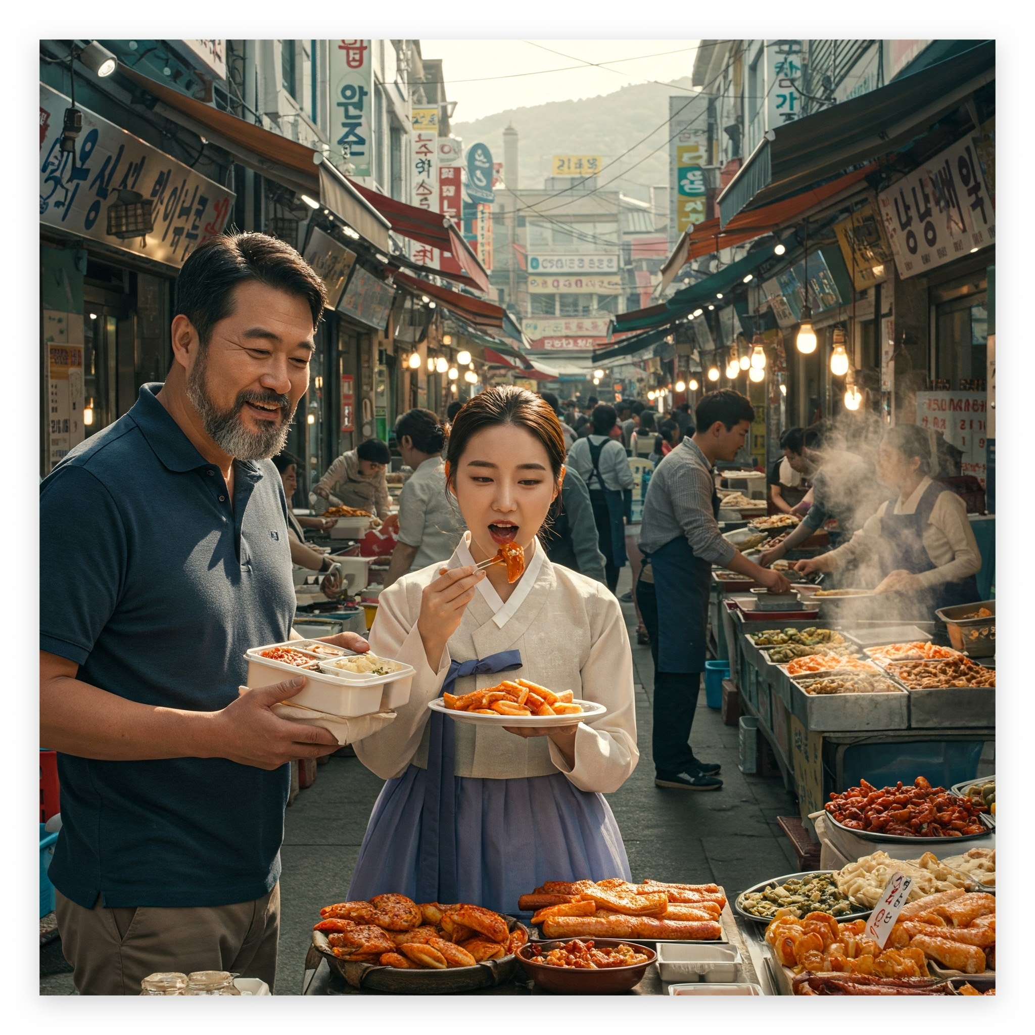 . 통인시장 명물 엽전으로 시장 음식들을 구매하여, 도시락 카페에서 식사할 수 있습니다.