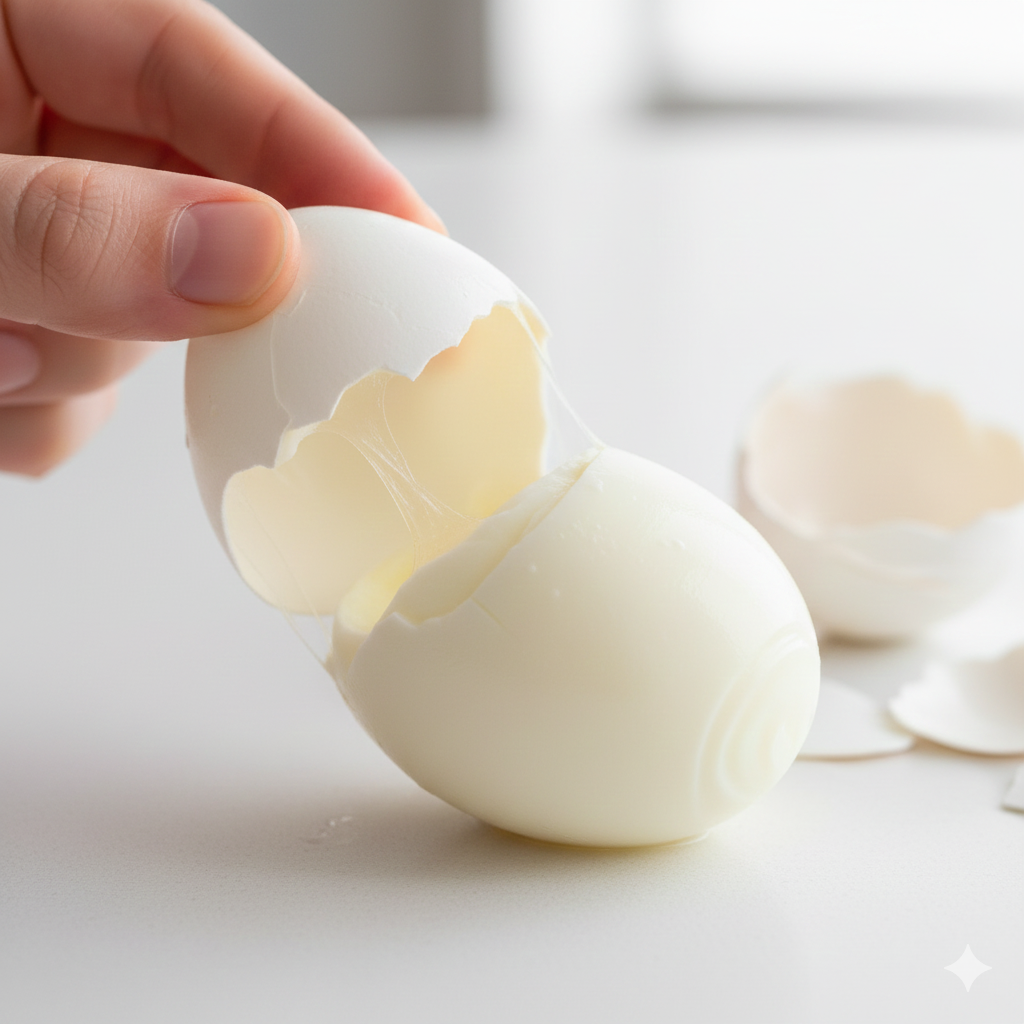 3. 매끈한 껍질 분리: 갑작스러운 온도 변화는 흰자를 수축시킵니다. 이때 껍질 안쪽의 난각막과 흰자 사이에 틈이 생겨 껍질이 훨씬 매끄럽게 잘 벗겨지게 됩니다.