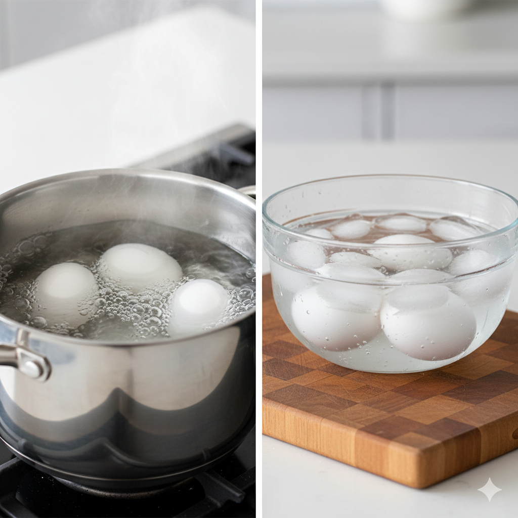 1. 오버쿠킹(Over-cooking) 방지: 달걀은 불에서 내려도 내부의 잔열로 계속 익습니다. 찬물은 이 열을 차단해 우리가 원하는 정확한 익힘 정도를 유지해 줍니다.