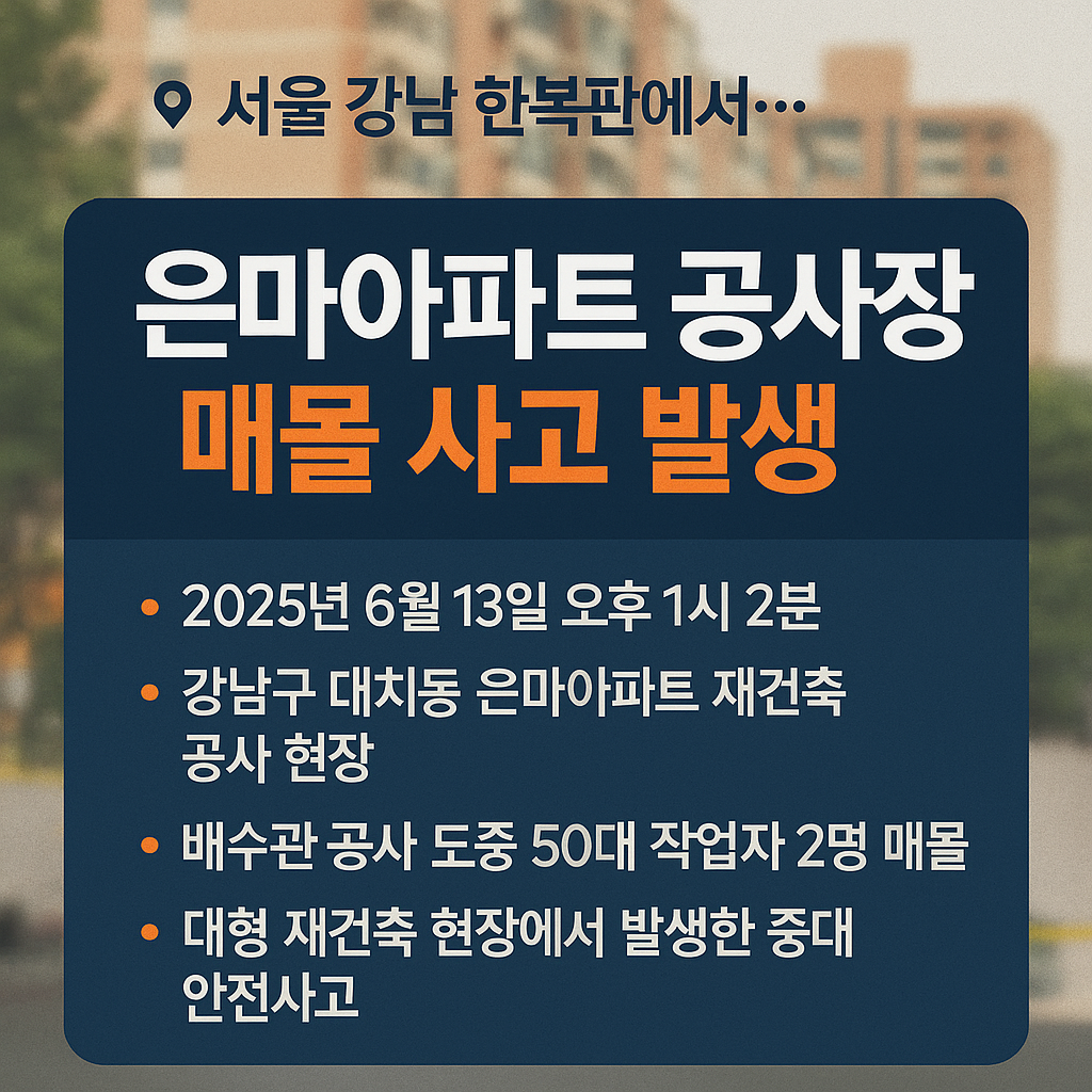 2025년 6월 13일, 서울 강남구 대치동 은마아파트 재건축 공사 현장에서 중대한 안전사고가 발생했다.