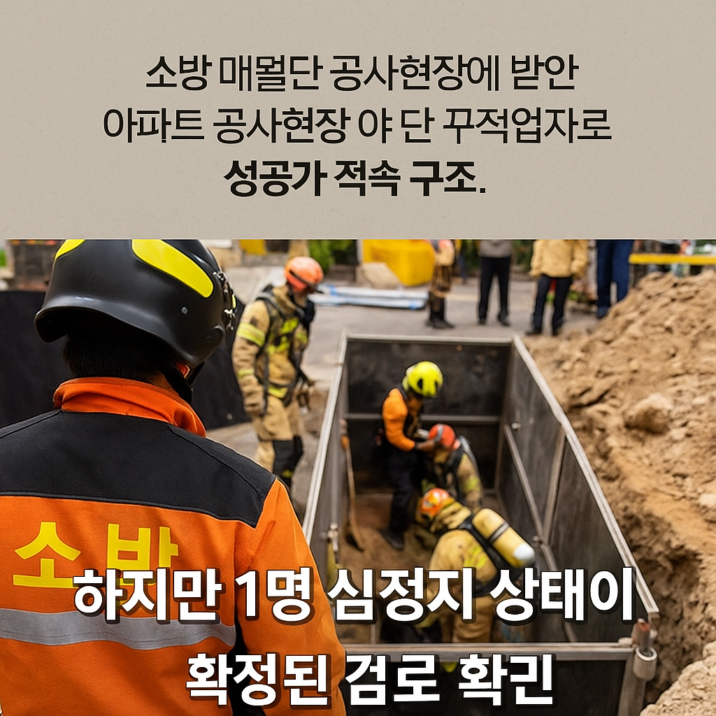 현장에서는 50대 작업자 2명이 각각 어깨와 허리까지 흙에 묻힌 상태로 발견되었으며, 신속한 구조가 이루어졌다. 이 중 60대 남성 1명은 심정지 상태로 구조됐고, 나머지 1명은 경미한 발목 부상을 입은 것으로 확인됐다.
