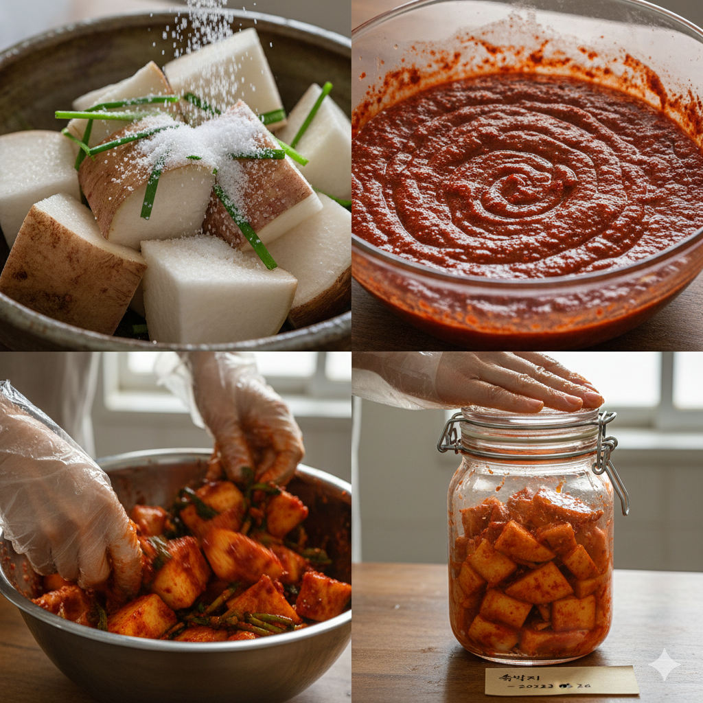 많은 분이 김치 담그기를 어렵게 생각하지만, 석박지는 배추김치에 비해 절이는 시간이 짧고 양념 배합이 직관적입니다.
