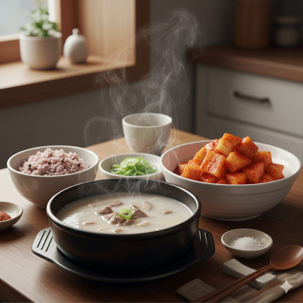 * 사골 곰탕 & 설렁탕: 두말할 필요 없는 최고의 조합입니다. 진한 국물의 느끼함을 석박지의 시원함이 잡아줍니다.