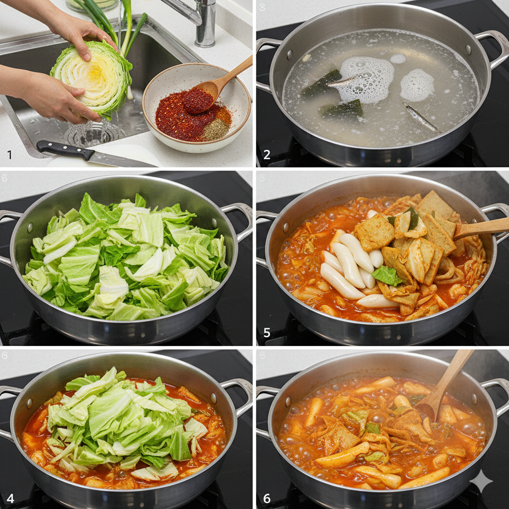 * 농도 조절: 국물이 너무 적으면 양배추에서 물이 나오기 전에 떡이 바닥에 붙을 수 있습니다. 약불에서 은근하게 조리하세요.