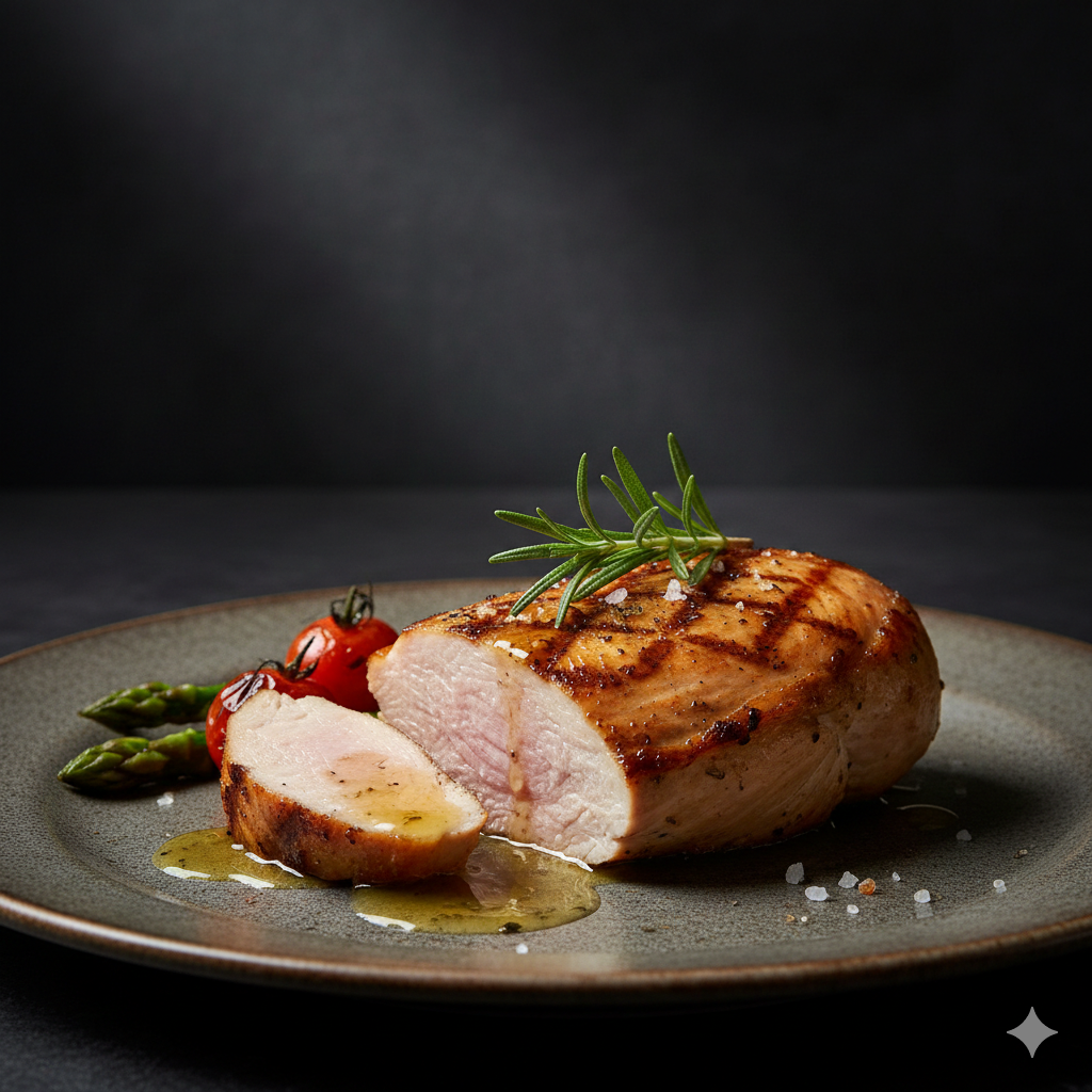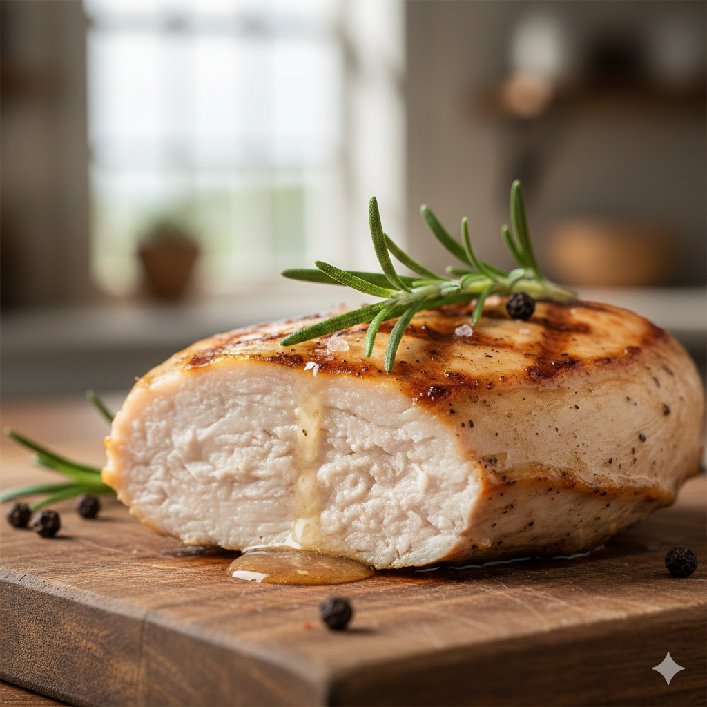 * 육즙 홀딩: 고기 내부의 수분을 가둬두어 닭가슴살 특유의 퍽퍽함을 완전히 제거합니다.