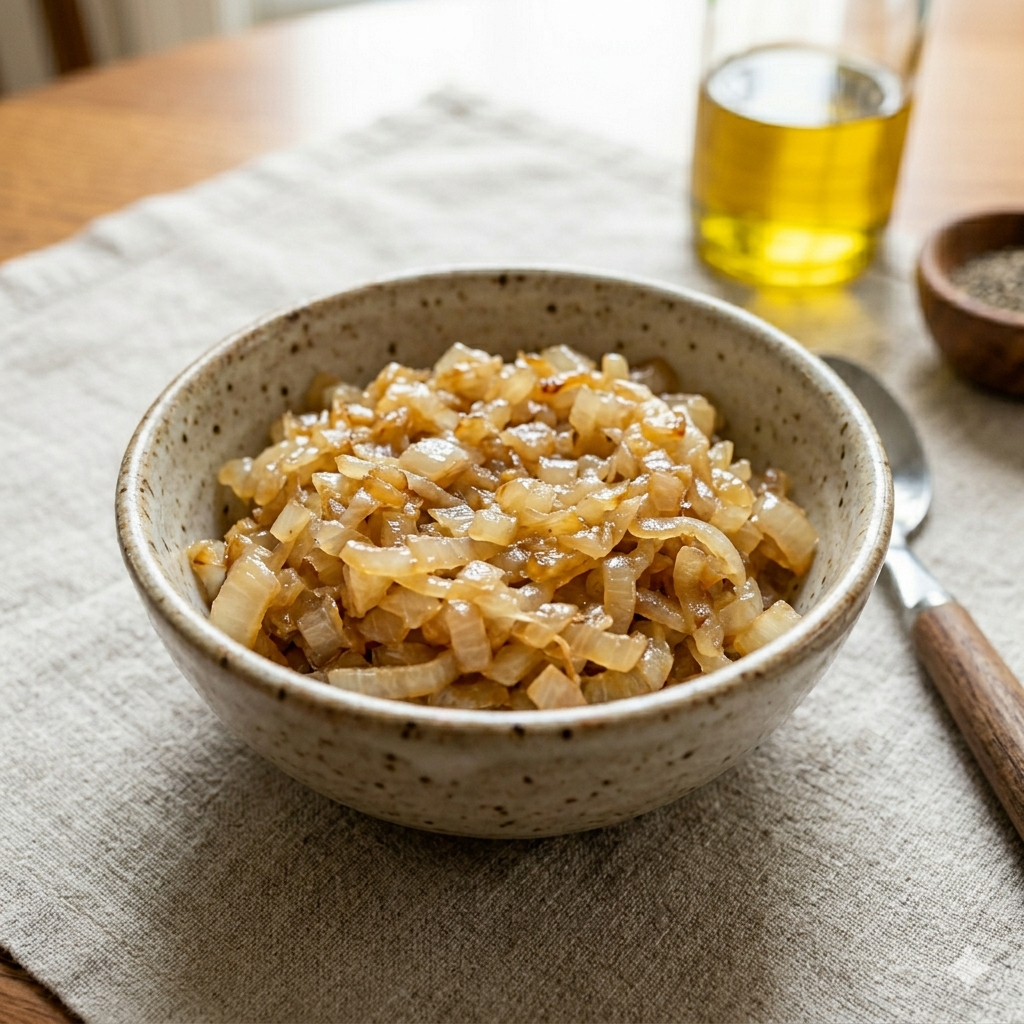 양파는 잘게 다진 후 팬에 식용유를 두르고 중약불에서 갈색빛이 돌 때까지 카라멜라이징하는 과정이 필수적입니다.