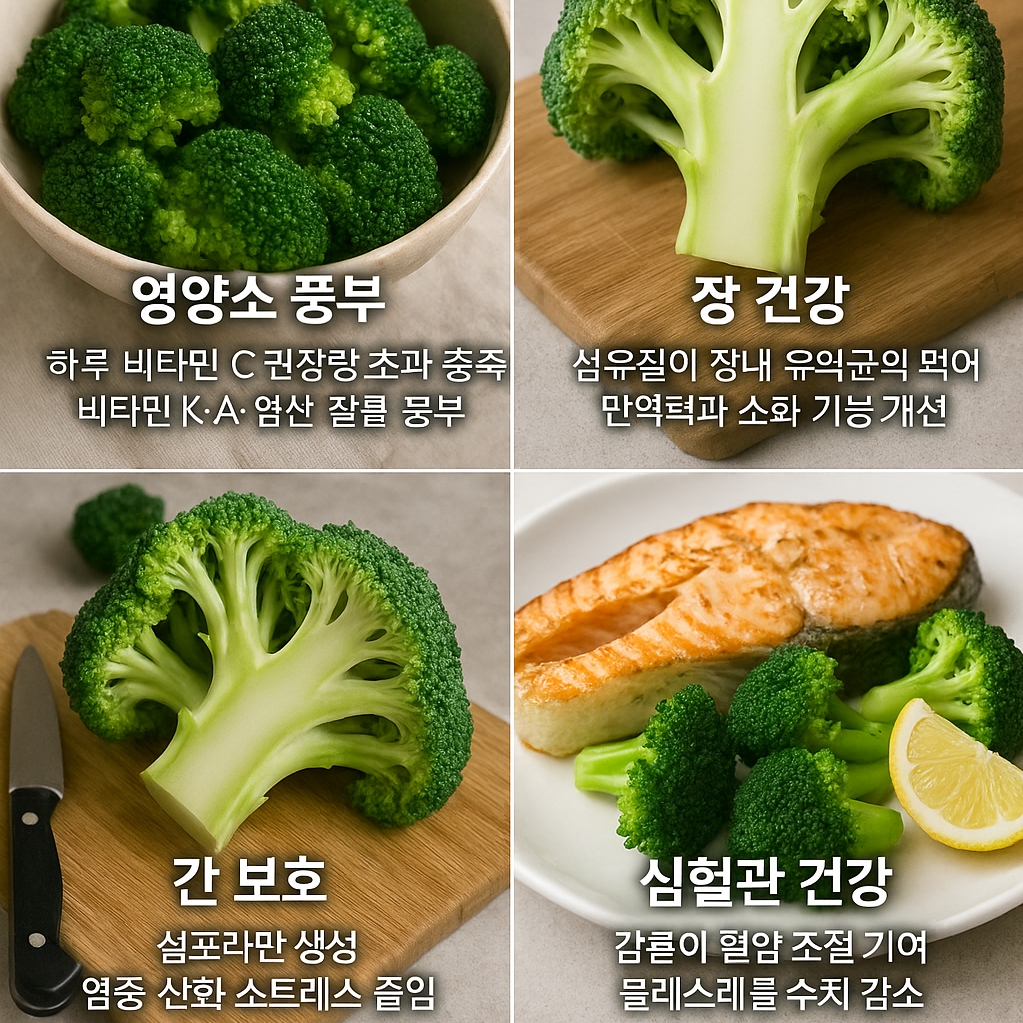 특히 설포라판이라는 식물 화합물은 해독 작용과 항산화 효과로 잘 알려져 있어 간 건강·면역력 강화·노화 방지에 기여합니다.