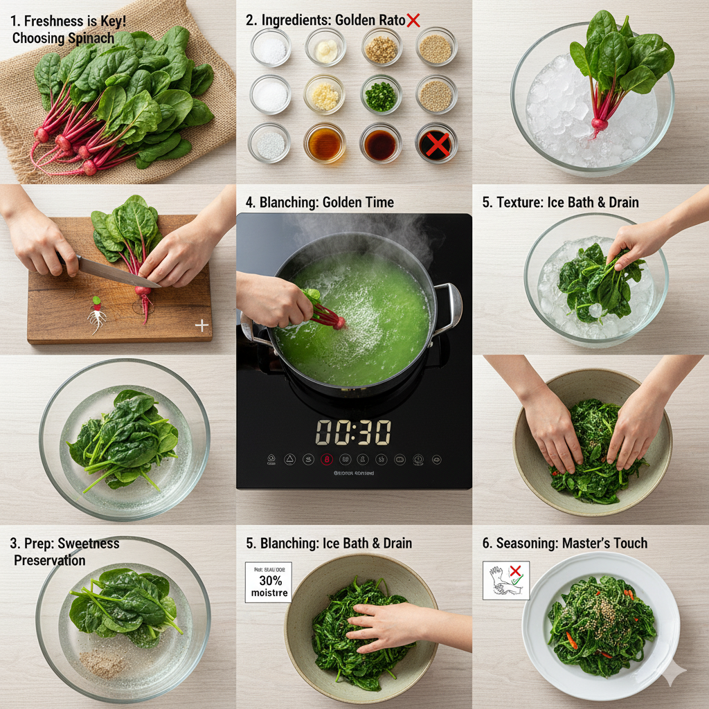4. 2단계: 아삭함의 모든 것, 시금치 데치기 '골든 타임' (30초의 과학)