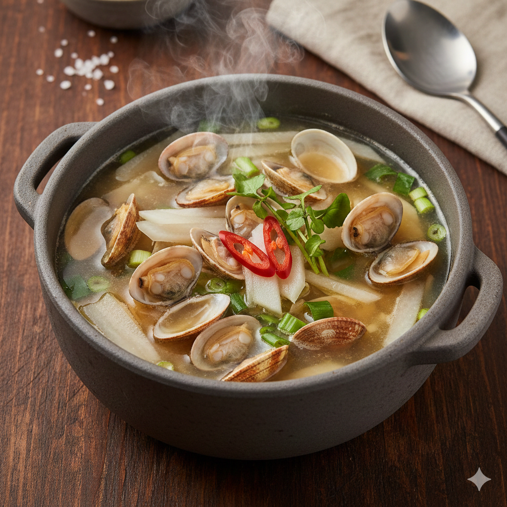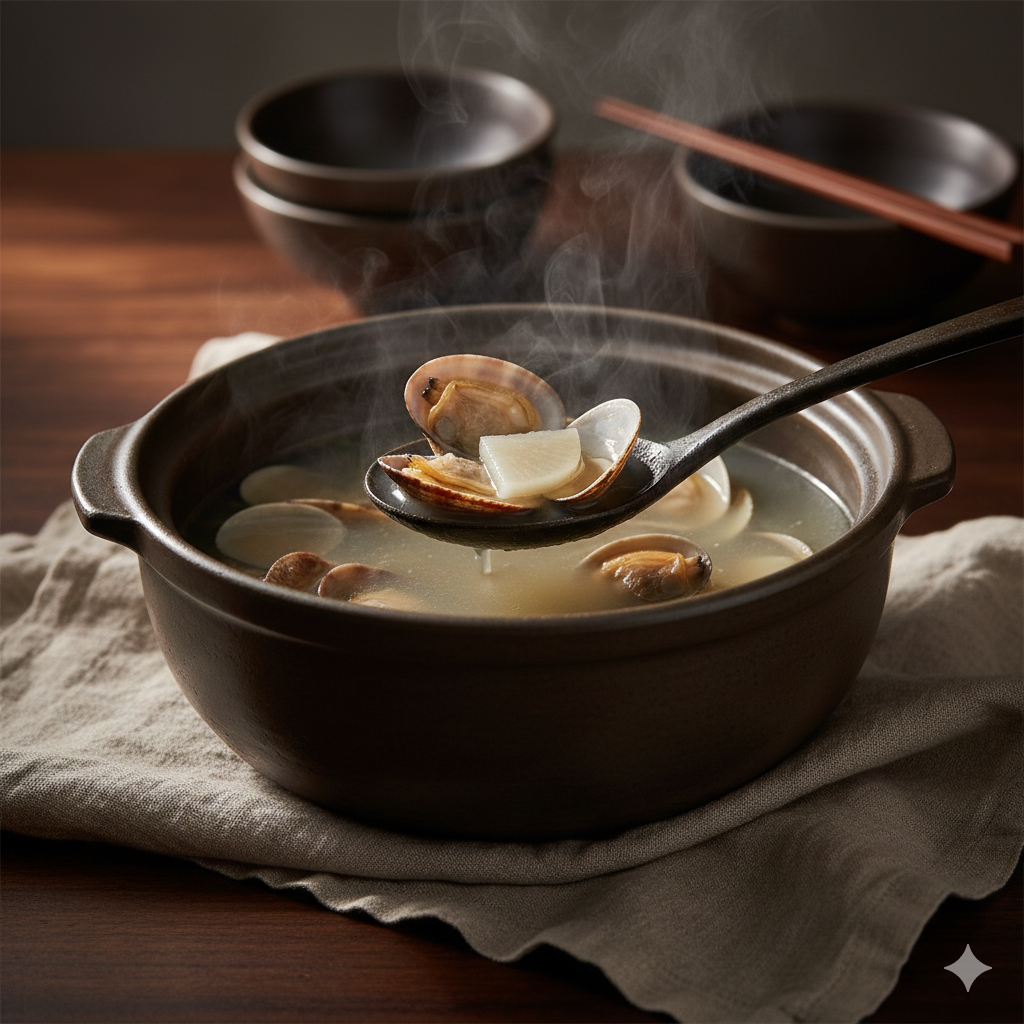 특히 무와 대파에서 우러나오는 천연 당분과 바지락의 호박산이 만나면, 맵지 않아도 속이 풀리는 최상의 '시원함'을 선사합니다.