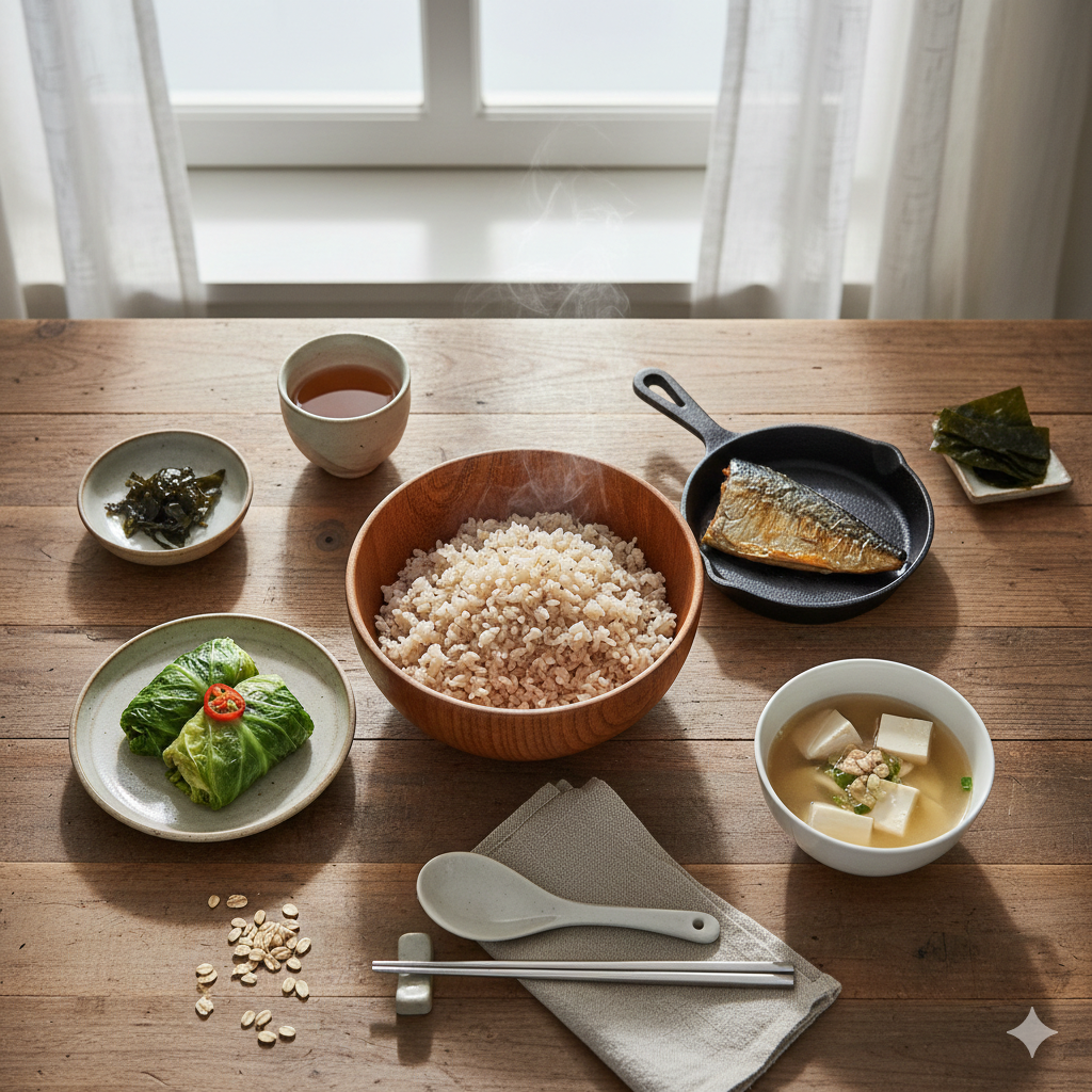 * 메인 반찬: 저염 소고기 장조림 또는 고등어 구이. 단백질을 보충하면서 귀리의 식감과 잘 어우러집니다.