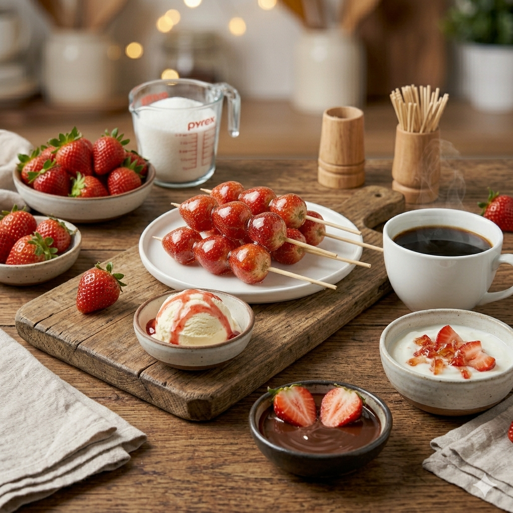 [홈메이드 디저트] 실패 없는 딸기 탕후루 만들기: 황금 비율 시럽과 세척·보관 꿀팁 총정리
