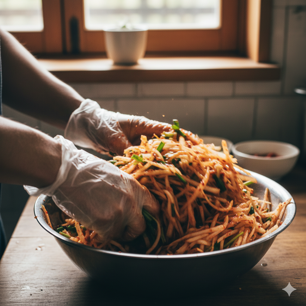 오늘은 초보자도 5분 만에 뚝딱 만들 수 있으면서도, 식당에서 먹던 그 감칠맛을 그대로 재현한 전문가급 무생채 레시피를 상세히 소개해 드리겠습니다.