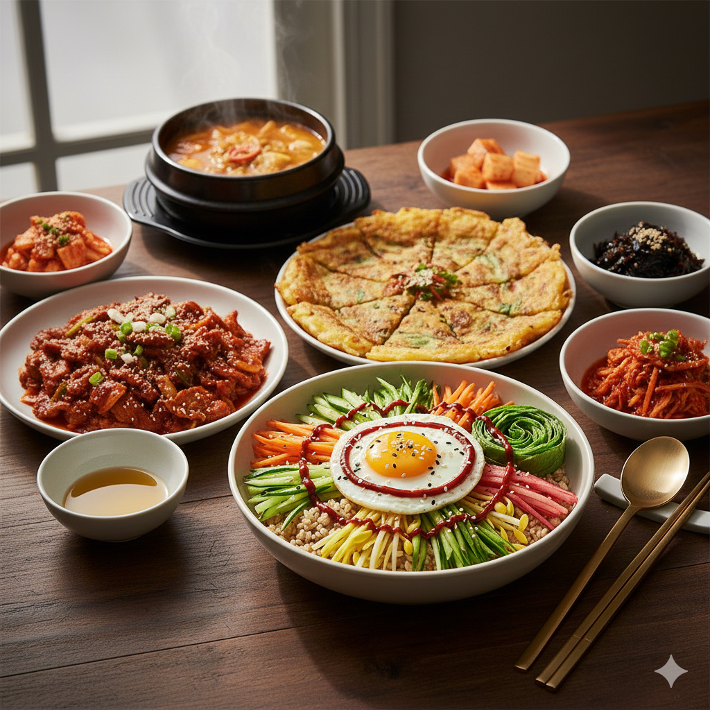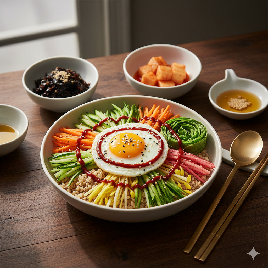 비빔밥 한 그릇만으로도 완벽하지만, 아래 메뉴를 곁들이면 임금님 수라상 부럽지 않은 한 상 차림이 됩니다.