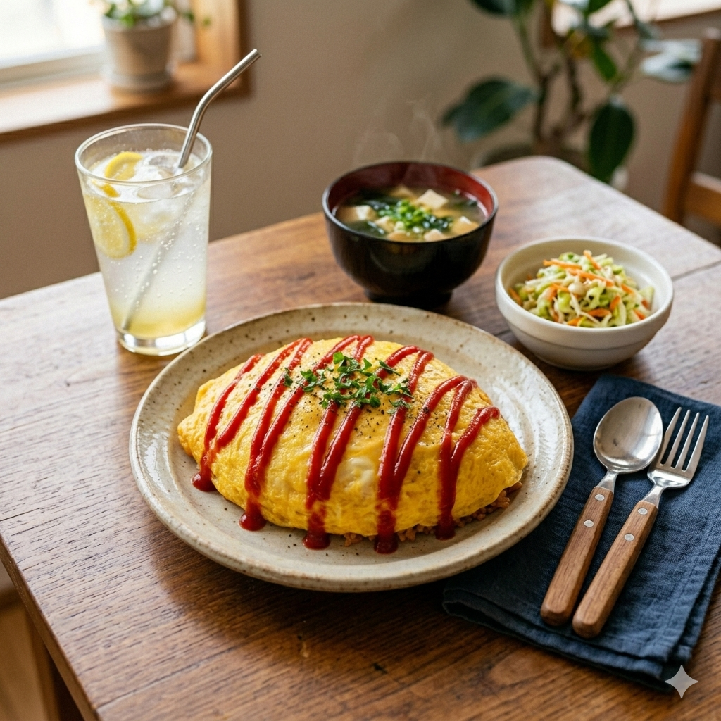 오므라이스는 단품으로도 훌륭하지만, 다음 메뉴들을 곁들이면 훨씬 전문적인 상차림이 됩니다.