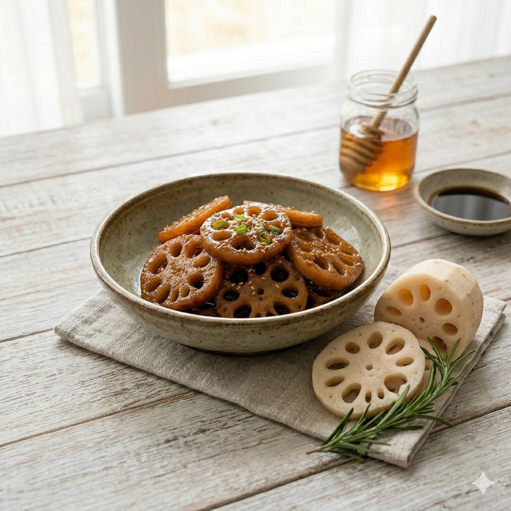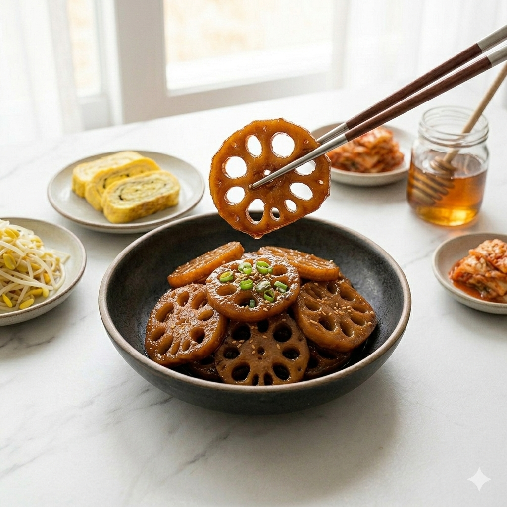 * 국물 요리: 깔끔한 소고기 무국이나 콩나물국. 입안을 정돈해 주어 연근의 식감을 돋웁니다.
