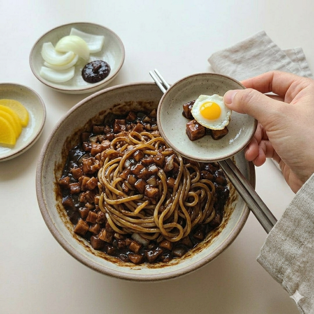 * 계란 후라이: 짜장 소스 위에 반숙 계란 후라이를 얹어 노른자를 톡 터뜨려 먹으면 환상적입니다.