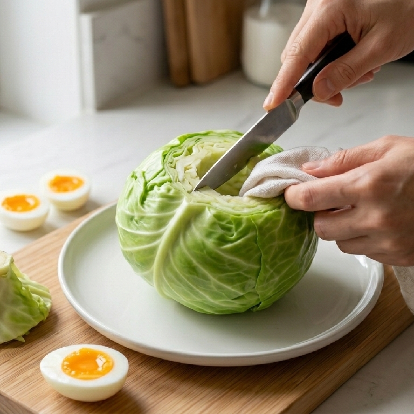 * 삶은 계란: 양배추에 부족한 완전 단백질을 보충해 줍니다. 아침 공복에 양배추와 계란 한두 개면 완벽한 영양 균형이 완성됩니다.