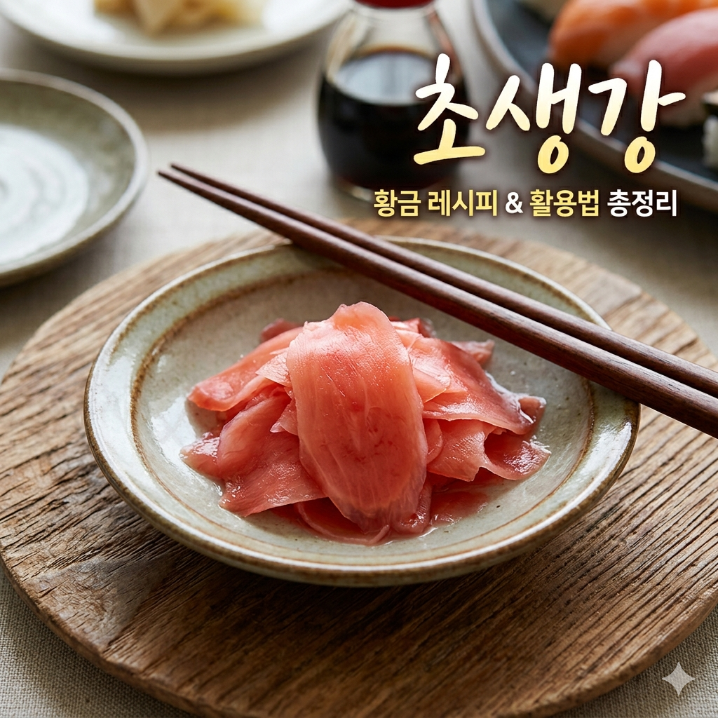 * 플레이팅 팁: 정갈한 도자기 그릇에 메인 요리와 함께 초생강을 소량 곁들여 내면 더욱 먹음직스러워 보입니다. 붉은색 초생강은 음식에 생기를 불어넣는 포인트 컬러 역할도 합니다.