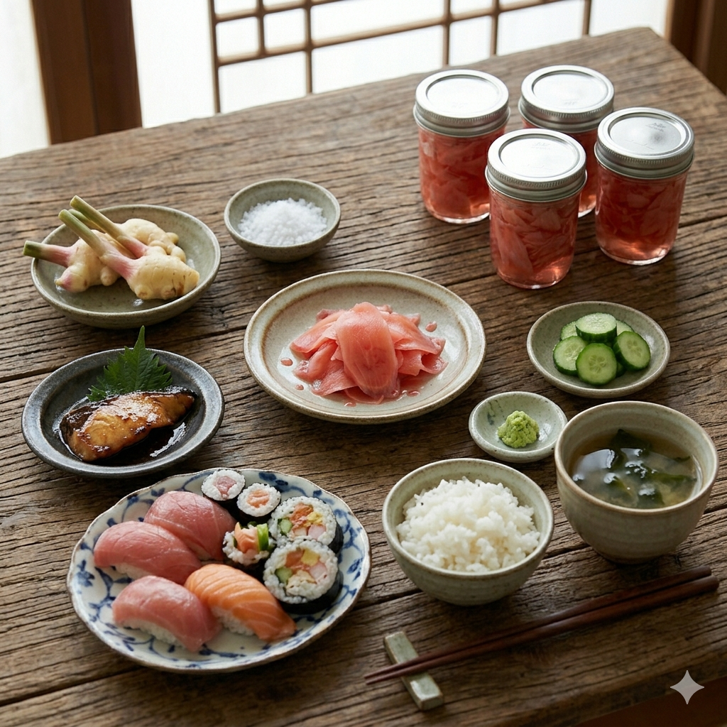 * 스시 & 사시미: 가장 대표적인 조합입니다. 초생강의 알싸함이 생선의 비릿함을 잡아주고 입안을 깔끔하게 해줍니다.