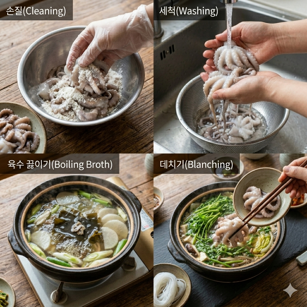 * 메인 재료: 생물 쭈꾸미 8~10마리, 소금 및 밀가루(세척용)