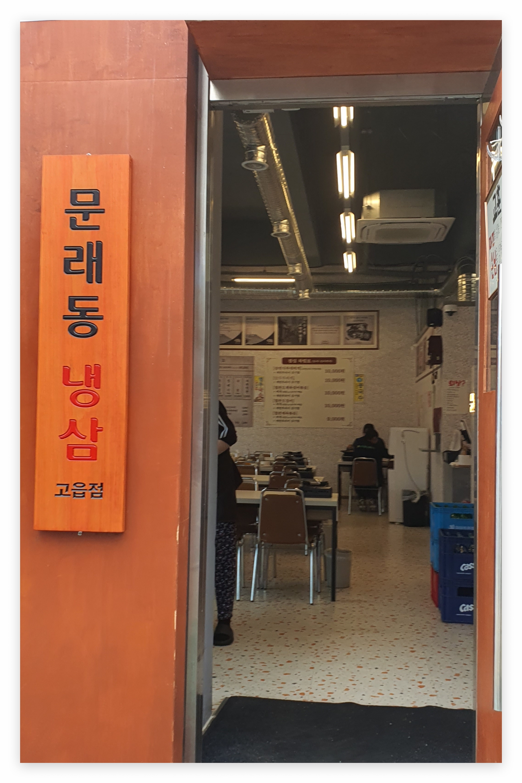 5월 5일 어린이날, 비가 내리는 흐린 날씨에 나들이 대신 가까운 곳에서 점심을 즐기기 위해 찾아간 '문래동냉삼 고읍점'.