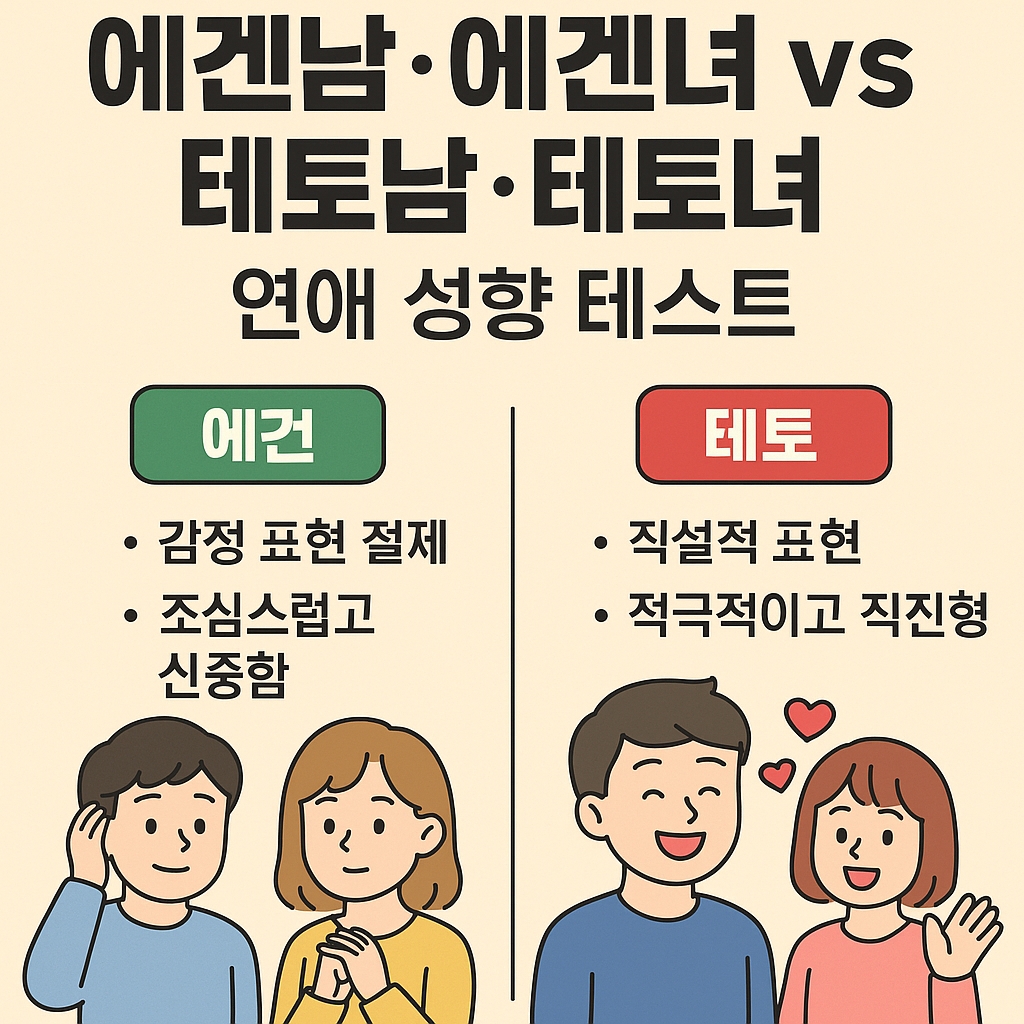 📝 연애 성향을 간단히 구분하는 밈과 테스트 중 에겐남·에겐녀’와 ‘테토남·테토녀’가 있습니다.