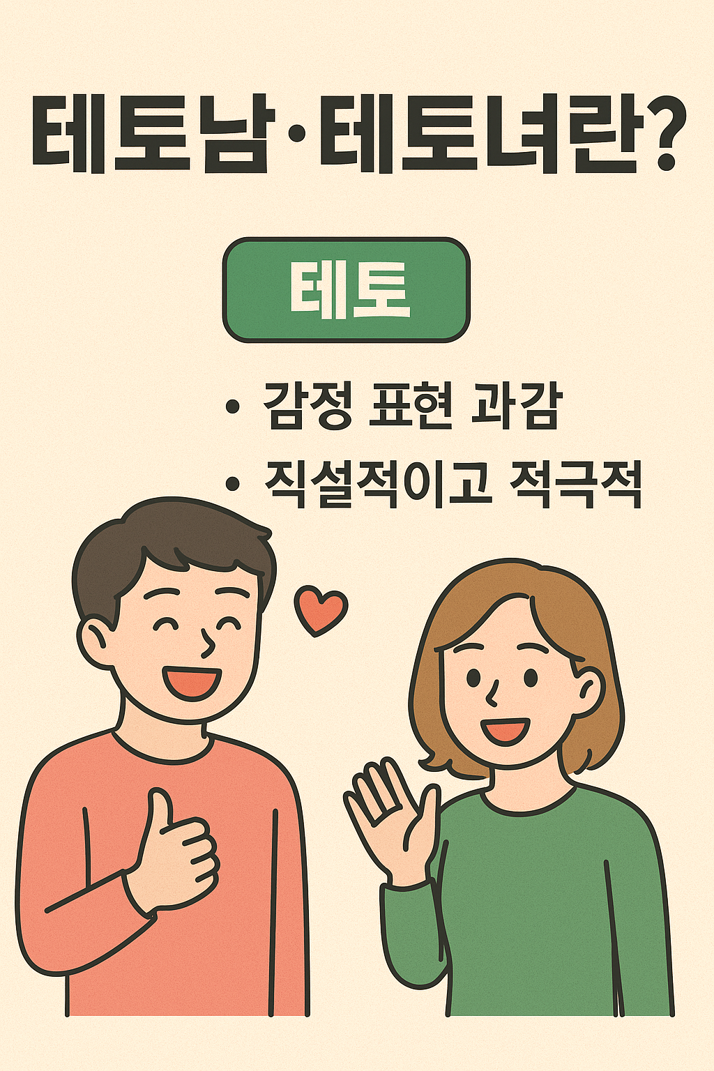 ‘테토’는 “테스트고 뭐고 토로한다”라는 표현에서 온 말로, 자신의 감정을 솔직하고 직설적으로 드러내는 연애 스타일입니다.