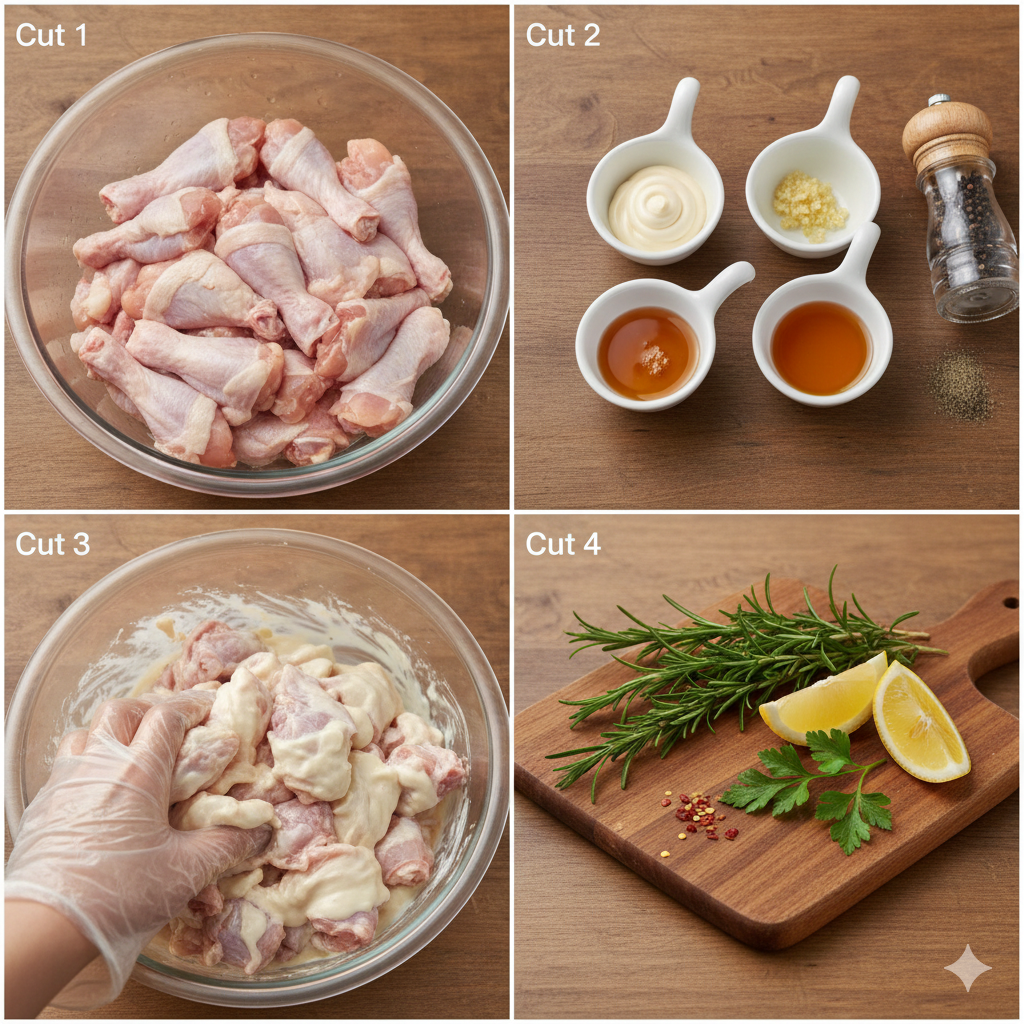 마요네즈의 달걀노른자 성분은 닭고기 표면을 코팅해 육즙이 빠져나가는 것을 방지하며, 가열 과정에서 풍부한 풍미를 더해줍니다.