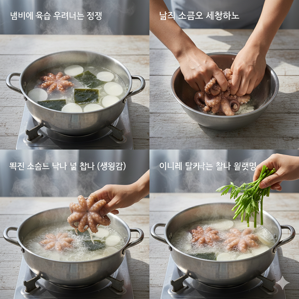 이 레시피는 타우린이 풍부한 보양식으로서의 가치를 살리면서도, 초보자도 실패 없는 감칠맛 육수 내기에 집중했습니다.
