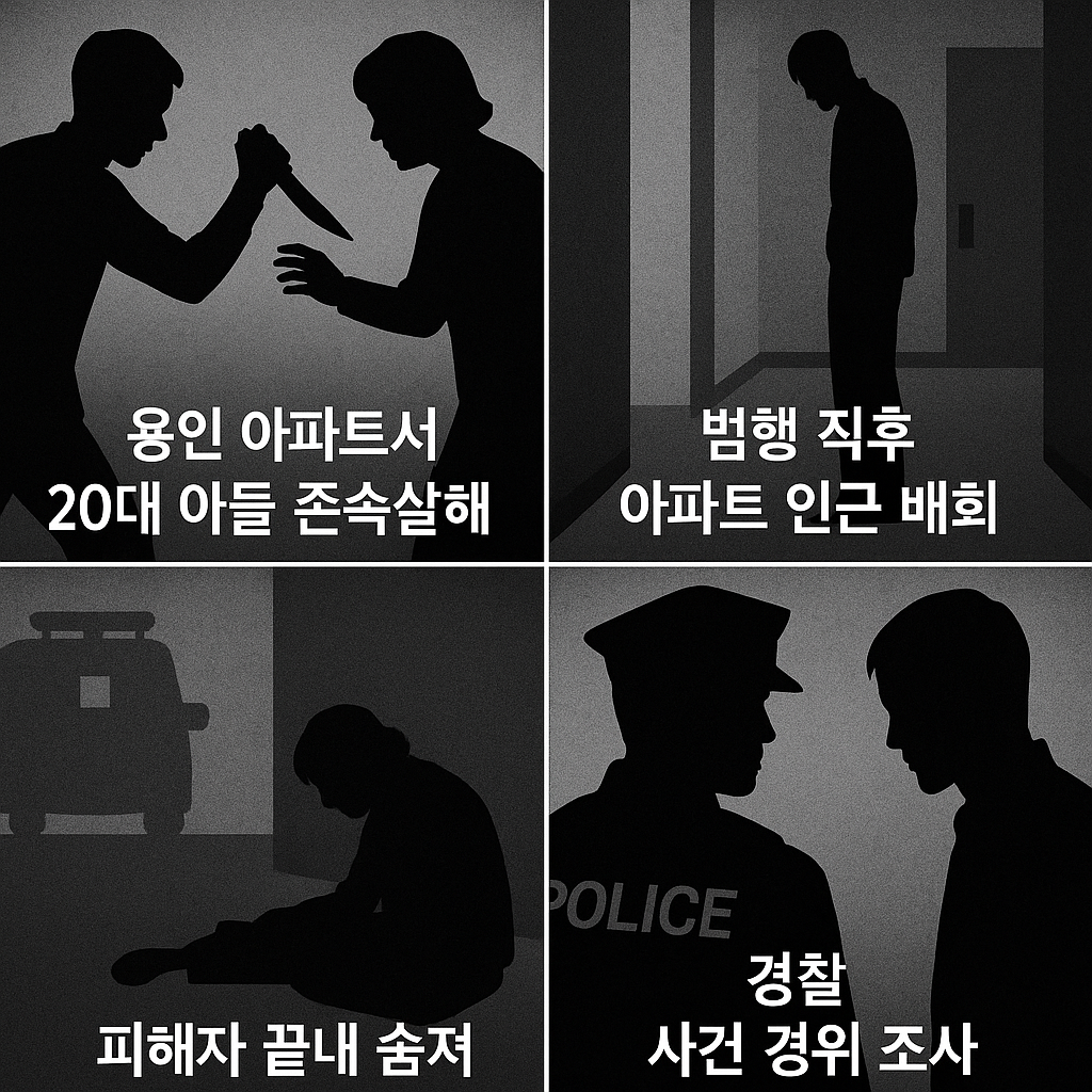 경기 용인시 기흥구의 한 아파트에서 20대 아들이 70대 모친을 흉기로 살해한 존속살해 사건이 발생하며 사회적 충격이 커지고 있다.