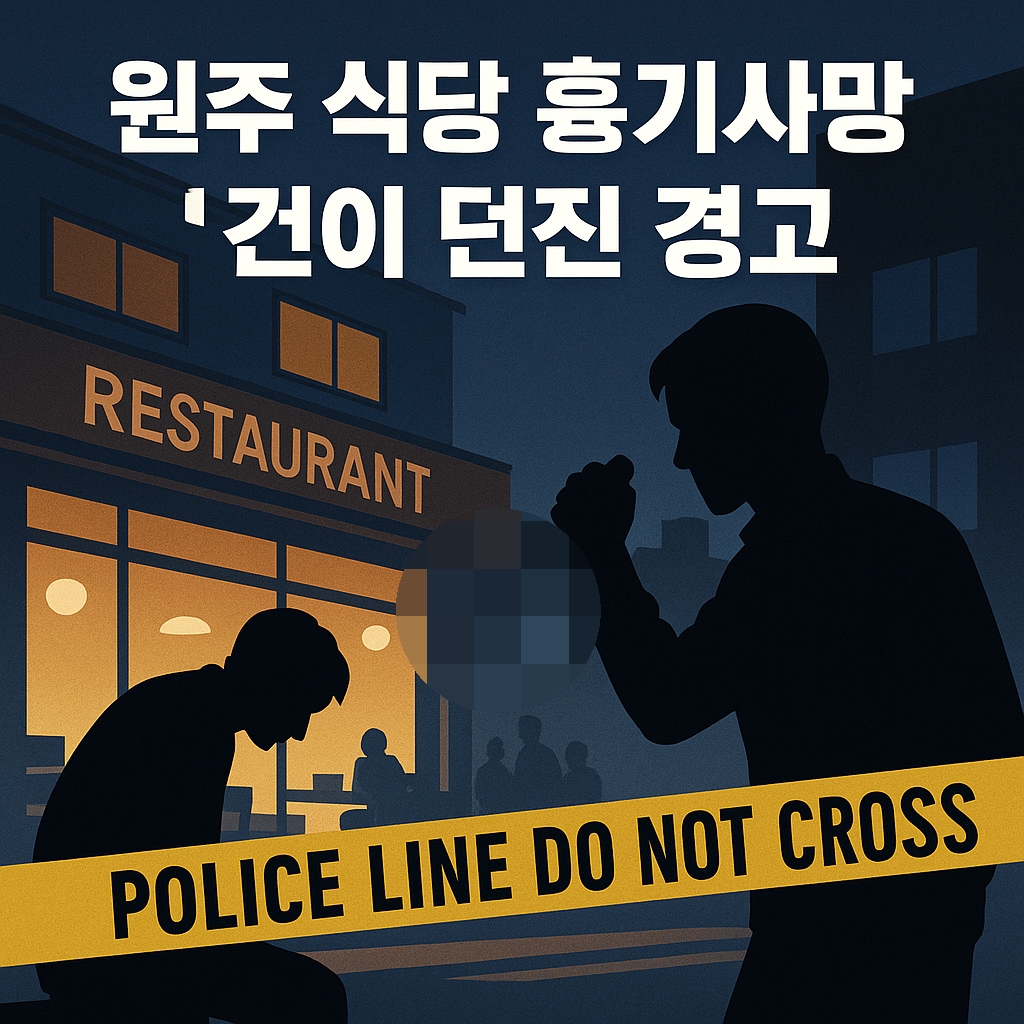 강원 원주시 명륜동에서 발생한 식당 흉기 사망 사건은 단순한 개인 간 충돌을 넘어, 우리 사회가 안고 있는 음주 범죄와 공공장소 안전 관리의 취약성을 적나라하게 드러낸 사례다.