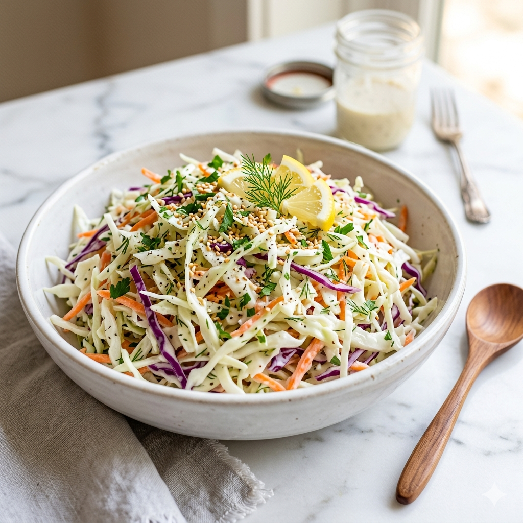 양배추 샐러드는 그 자체로도 훌륭하지만, 기름진 음식의 느끼함을 잡아주는 데 탁월합니다.
