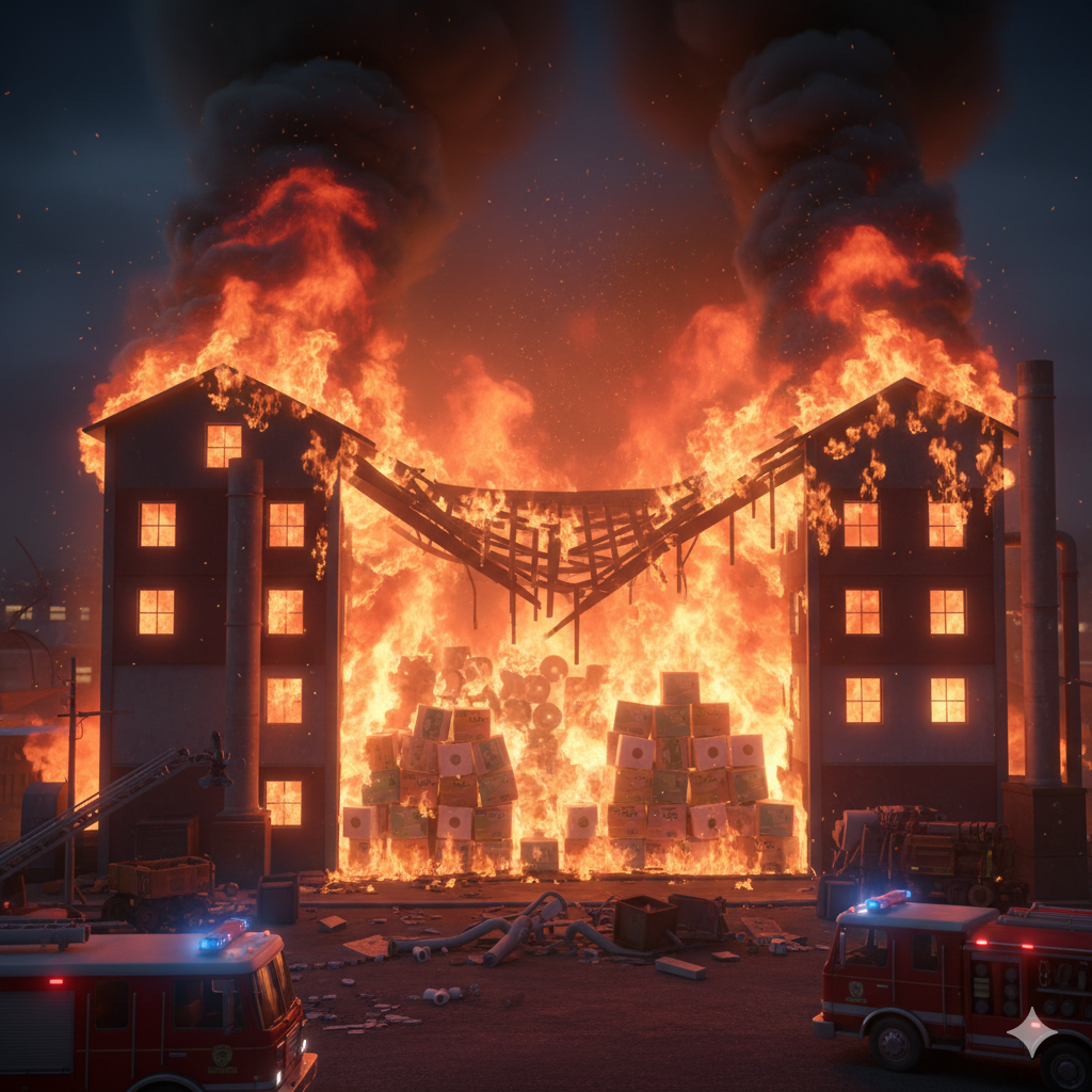 * 펄프의 높은 발열량과 흡수성: 펄프는 화재 시 엄청난 열을 방출할 뿐만 아니라, 진화를 위해 뿌린 물을 흡수하여 무게가 수 배로 늘어납니다. 이는 가뜩이나 약해진 바닥과 기둥에 연쇄 붕괴(Progressive Collapse) 압력을 가하게 됩니다.