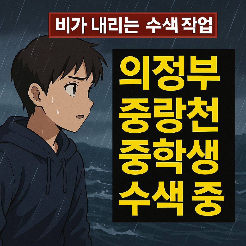 2025년 10월 13일 오후 5시 35분경, 경기 의정부시 의정부동 중랑천에서 중학생 한 명이 급류에 휩쓸려 실종되는 사고가 발생했습니다.