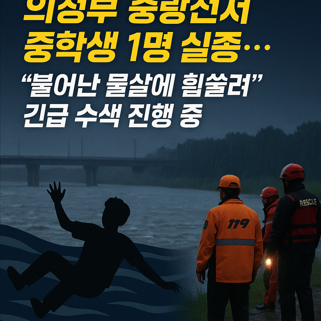 🚨 의정부 중랑천서 중학생 1명 실종… “불어난 물살에 휩쓸려”